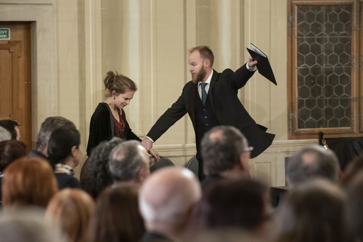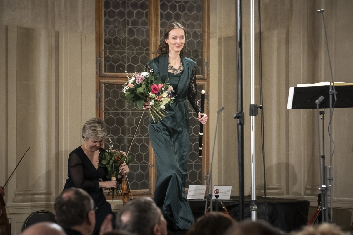 Zvláště hudba Bachova vzdáleného bratrance Johanna Bernharda, sledující francouzský vzor řazení různě stylizovaných částí do suity, byla příjemně roztančená a v částech s flétnou nebo flétnami mimořádně muzikální, rozkošná. Jana Semerádová, ať už má v rukou dřevěnou příčnou flétnu dvou různých velikostí nebo flétnu zobcovou, si s nástrojem pohrává: má v zásobě široké spektrum tvoření tónů, artikulace, akcentů, dynamiky… a s chutí a naprostou uvolněností melodie bohatě, ale vždy vkusně zdobí. V její hře není ani stín virtuózní okázalosti, ale jde v každé chvíli jen a jen o radostné, neodolatelně malebné muzicírování. I hrou těla navíc bezděky vysvětluje, proč jsou souboru Collegium Marianum v jeho programech – jako součást hudby – často tak blízké tanec, choreografie a barokní gestika.