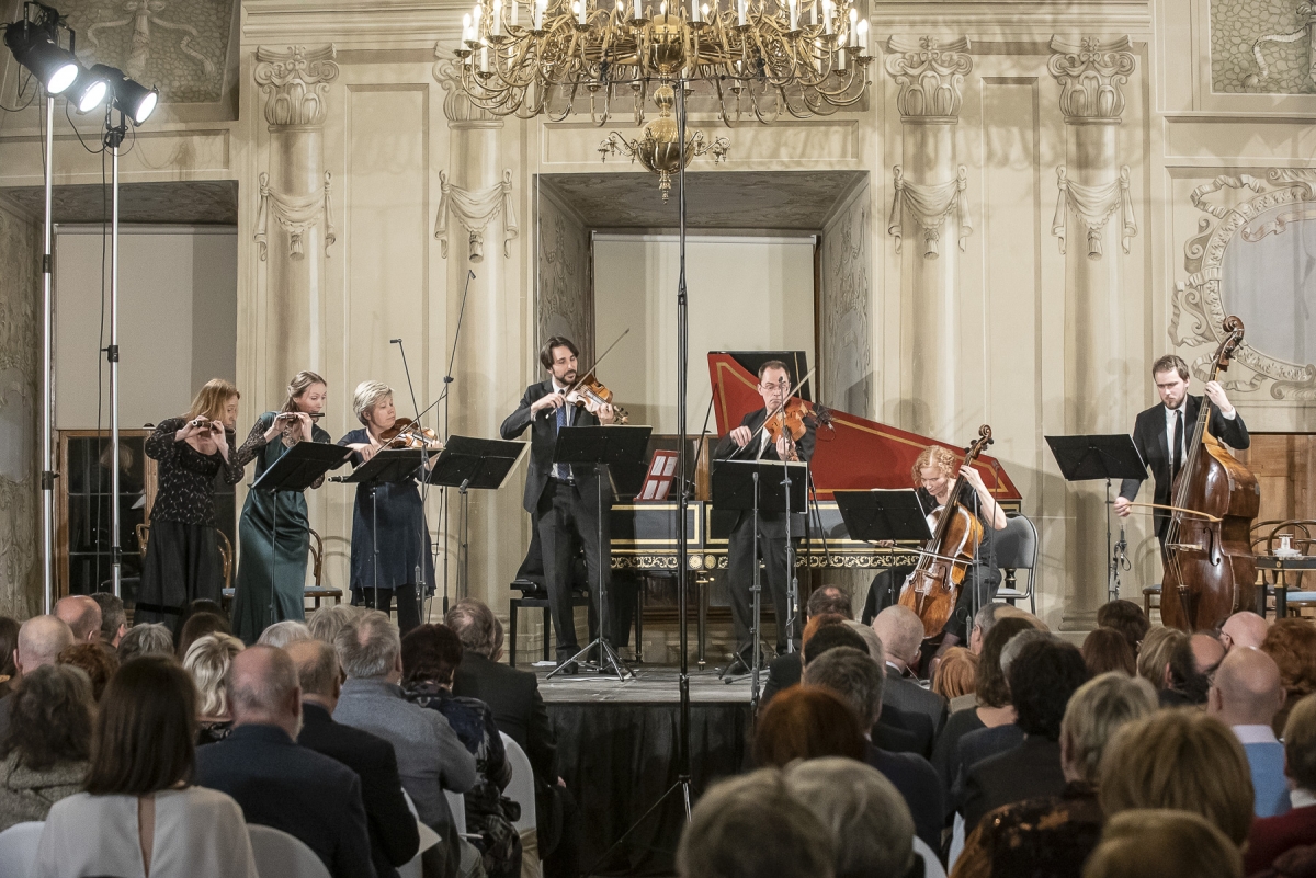 Ryze instrumentální hudba, ať už šlo o část Hudby k tabuli (Entrata per la Musica di Tavola) od Christophera Graupnera, nebo o Ouverturu č. 2 „Les plaisirs“ a pak i část z Ouvertury č. 4 „La Joye“ od Johanna Bernharda Bacha, zaznívala s lehkostí, radostí, elegancí a potěšením. Všechny tyto podněty vycházejí v každém okamžiku od umělecké vedoucí souboru, které stačí pohled nebo zvýrazněný drobný pohyb k tomu, aby dala kolegům – a současně i vnímavému publiku – najevo, že v hudbě stále o něco jde, že je živá, podnětná, zábavná. Komorní sestava (ať už jen jako basso continuo, nebo v plném zvuku) se samozřejmostí, ale bez přehánění, uplatňující dikci dobové interpretační praxe bez vibrata, s charakteristickými důrazy a závěry frází, v každém okamžiku potěšila.