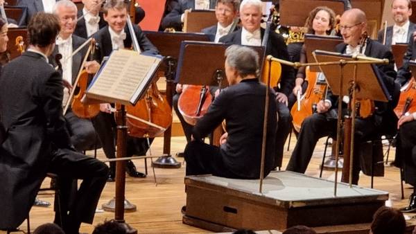 Devátého září pokračoval mezinárodní hudební festival Dvořákova Praha výjimečným koncertem s Mnichovskou filharmonií řízenou dirigentem Myung-Whun Chungem. Sólistou v Schumannově Violoncellovém koncertu byl jedenatřicetiletý madridský rodák Pablo Farrandéz. Výjimečnost večera tkvěla jednak v málo hrané Brucknerově 6. symfonii, jednak samozřejmě v návštěvě jednoho z předních světových orchestrů. Spočívala i ve výkonu všech, v romantickém a niterném i vášnivém přednesu cellisty, v eminentně atraktivním dirigování a ve zvuku jak Stradivariho cella, tak orchestru. Chci se především podělit o fotografie, které jsem udělal bleskově o přestávce a po konci koncertu mobilem. Byl jsem upozorněn, že dirigent Myung-Whun Chung se tak nerad fotí, že jistě odmítne; sice svou averzi zmínil, ale na chvíli mi postál.