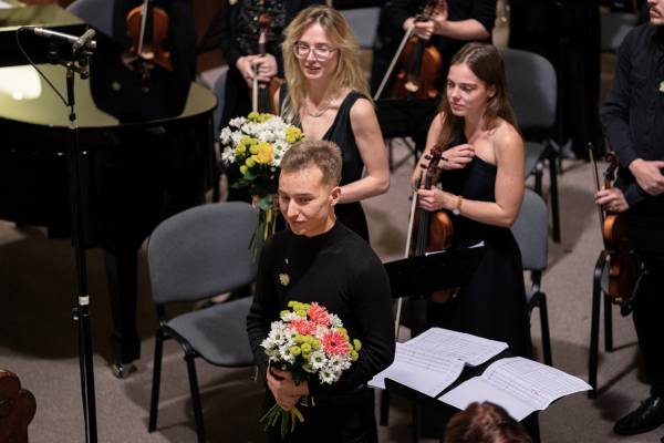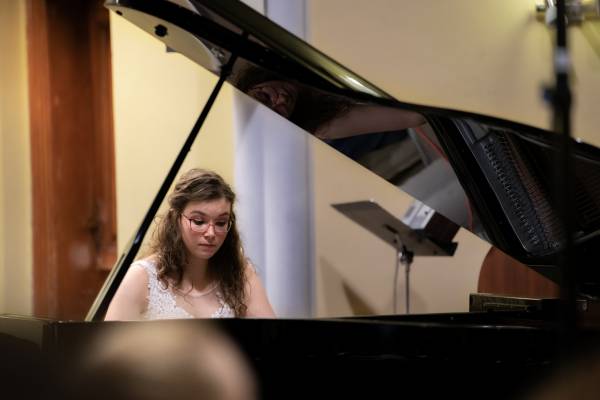 Tou byla Klára Skalková, posluchačka Pražské konzervatoře, kde studuje klavír ve třídě Milana Langera. Její renomé je již nyní velmi impresivní; získala první a druhé ceny na mezinárodních soutěžích a spolupracovala i s profesionálními tělesy. Pro nás diváky si nyní připravila velmi kulatý a zpěvný zvuk, který pro koncert použila. Díky skvěle zvládnuté technice si posluchač snad ani nevšiml enormní náročnosti nespočetného množství běhů, které tento koncert obsahuje, a místo toho zkrátka jen poslouchal tok hudby, což je podle mne u Mozarta velmi žádoucí – a zároveň velmi nesnadno dosažitelné. Zejména v krásně čitelně zahraných kadencích pak vynikl celkový přístup sólistky k této skladbě, který byl poměrně romantický, ovšem vyveden velmi vkusně. Za další zmínku stojí například provedení druhé věty, ve které sopránový hlas klavíru plynule zpíval nad ostatními. A závěrečná kadence třetí věty, byť obsahuje i lehce neintuitivní pasáže, ve kterých by se hudebně mohl ztratit leckterý posluchač i interpret, byla jasná a srozumitelná a dovedla skladbu k velmi uspokojivému konci.