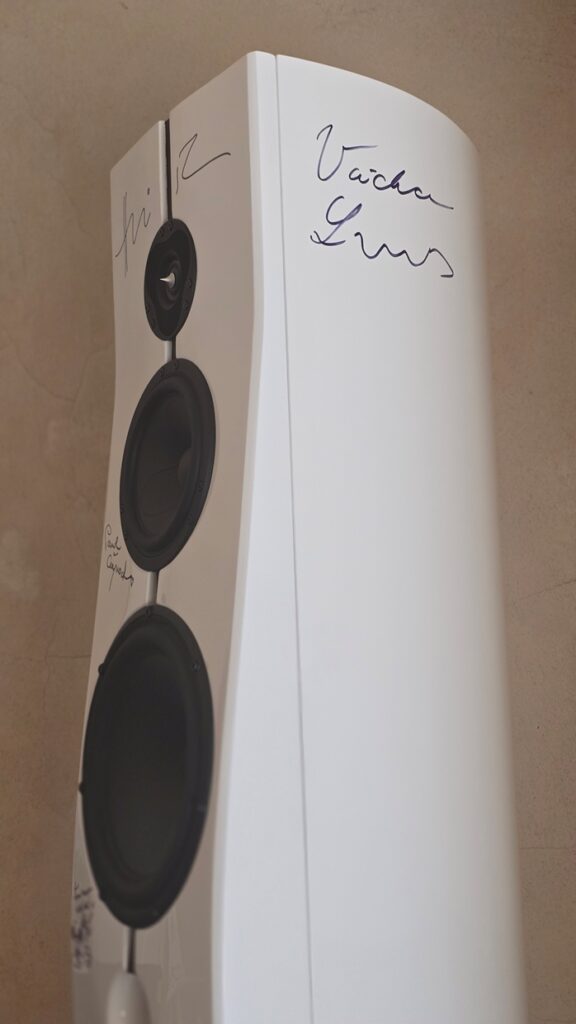 Na špičkových designových reproduktorech, které jsou v areálu Zámeckého návrší v Litomyšli předmětem veřejné aukce, přibývají podpisy známých osobností, umělců vystupujících letos na festivalu. Zvyšují jedinečnost vystaveného draženého artefaktu, jehož vyvolávací cena je 290.000 korun.
