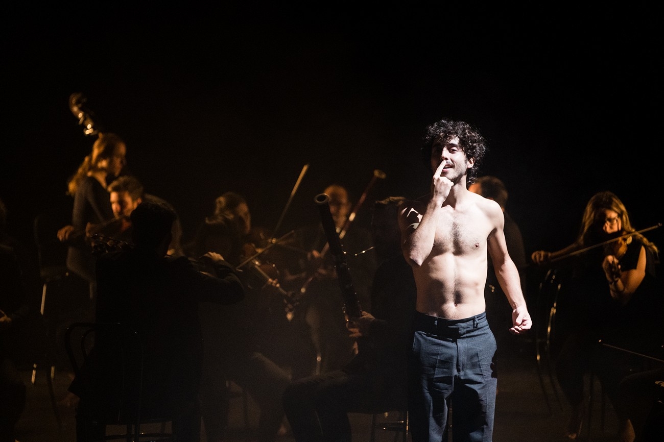 V celém sále je tma. Jen úzký kužel světla lampy osvětluje židli, která se s vrzáním posouvá po pódiu díky postavě plazící se pod ní… Tak začala expozice Symfonie č. 40 g moll Wolfganga Amadea Mozarta. Hudebníci hráli rozestaveni po obou stranách obecenstva, violoncellisté seděli na židlích na pódiu. V provedení první věty Molto allegro potom hudebníci pozvolna nakráčeli na pódium, aby teprve začalo hlavní představení, které mělo být vyjádřením dramat odehrávajících se v umělcově nitru. Jeho neklid a rozervanost v první větě byly vyjádřeny jen pohybem jednotlivých hráčů zmítajících se uprostřed husté kouřové mlhy. Ve druhé větě Andante se nám jeho duše začala více otevírat a obnažovat ve ztvárnění pomalými pohyby hlavního tanečníka. Těmito pohyby jakoby si plně uvědomoval sám sebe, své tělo i celou svou bytost se všemi hnutími mysli a duše, které mohly být zase vyjádřeny lehce se zvedajícími a opět klesajícími pohyby hudebníků sedících na židli. Třetí věta už byla nepokrytým vyjádřením umělcových vnitřních rozporů, skepse a pesimismu. Žádné odlehčené scherzo. Věta Menuetto byla umělcovým šílením a jeho hudební vyjádření umocňoval tanec sólisty, který ve svém rozpustilém tanci pokládal na zem jednoho hudebníka sedícího na židli za druhým.