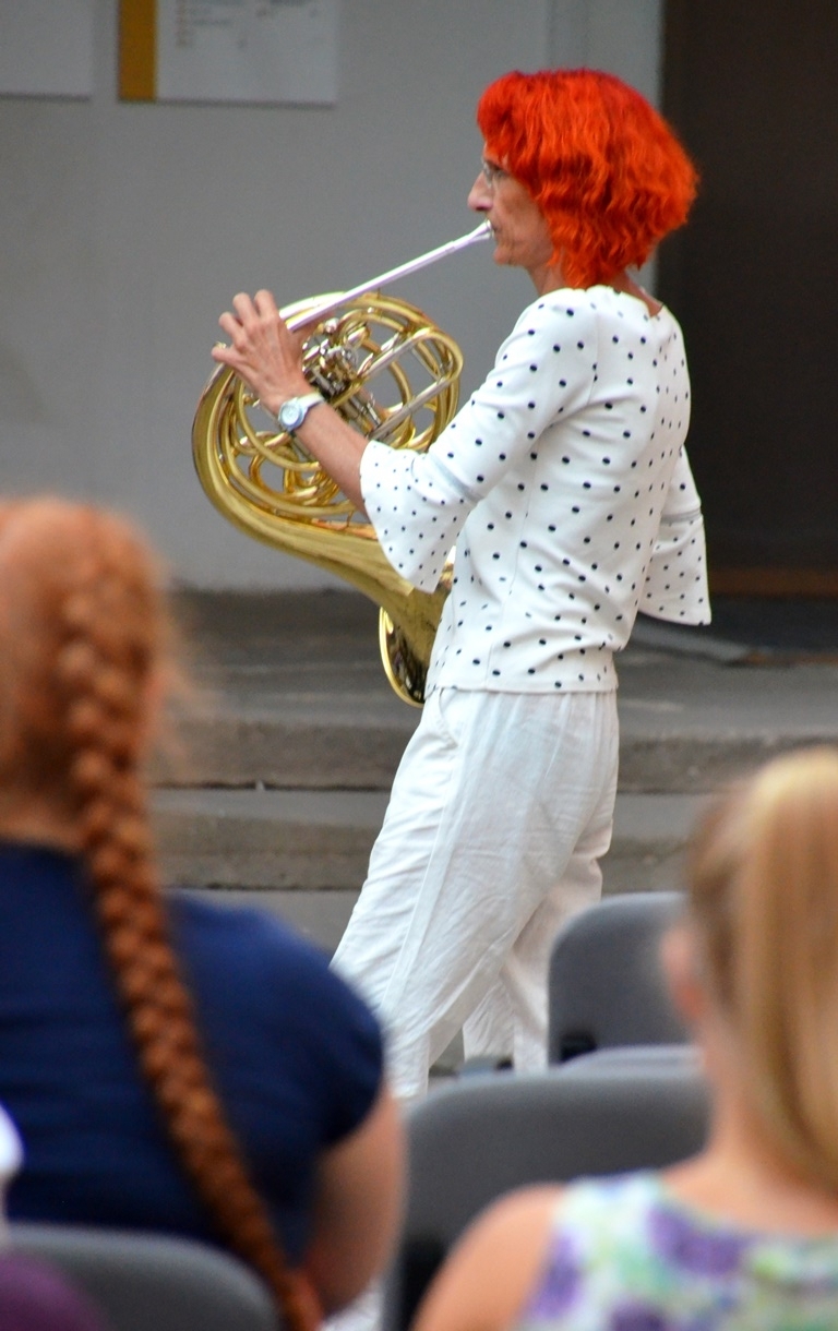 Páteční večer přináší další z každodenně pořádaných koncertů. Ředitelka kurzů Tereza Kramplová už den předem plánuje, že by z několika důvodů bylo dobré umístění venku. V sálech kláštera začíná být horko a uzavřený prostor by mohl při překročení počtu stovky lidí znamenat nutnost roušek. A navíc vůbec nebude špatné, když si mladí hornisté vyzkoušejí i jinou než klasickou sálovou akustiku. Pomyslné pódium je tedy v rohu klášterního nádvoří. Zvuk se v prostoru uzavřeném čtyřmi křídly budovy dobře nese. Střídají se menší i větší, začátečníci i zkušenější. Zaznívají kratší skladby nebo věty z cyklických děl, stará i novější hudba. Klasika. Žádné crossovery nebo líbivá aranžmá. Přemluvit se k vystoupení tento den nakonec nechal i královéhradecký lékař, nadšený a schopný amatér, jeden z těch starších účastníků. Vystřídali se Češi a Maďaři i příslušníci dalších národností, vystoupil opět Quartett Cornissimo. A zahrála také malá Anička, která hraje sotva rok a zatím umí na hornu jen omezený počet tónů; ale umí je moc pěkně! Do nádvoří se po dvou hodinách vkrádá soumrak. Jak se nakonec ukazuje, jde z letošních koncertů o ten nejdelší.