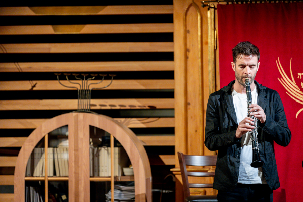 Psát o tom, že se klarinet hodí do synagogy je samozřejmě klišé. Žádným klišé ale pánové nezačali. Namísto toho hosté z Německa sáhli po jemné melodii od Thomase Prestona. Začali zvolna a meditativně a jejich adaptace renesančního kusu byla velmi nadčasová. Nová synagoga v Liberci je zajímavou stavbou, která přiléhá k budově moderní Krajské vědecké knihovny. Upomíná na to, že v těchto místech stála původně rozlehlá a honosná budova synagogy, kterou vypálili nacisté v listopadu roku 1938. Současná izraelitská modlitebna má trojúhelníkový půdorys a stěny z betonu. Nabízí zajímavý architektonický zážitek, atmosféru, ale také akustiku. Je to specifické místo vhodné pro komorní koncerty a neinvazivní produkce. Projekt Alter ego byl v tomto smyslu trefou do černého.
