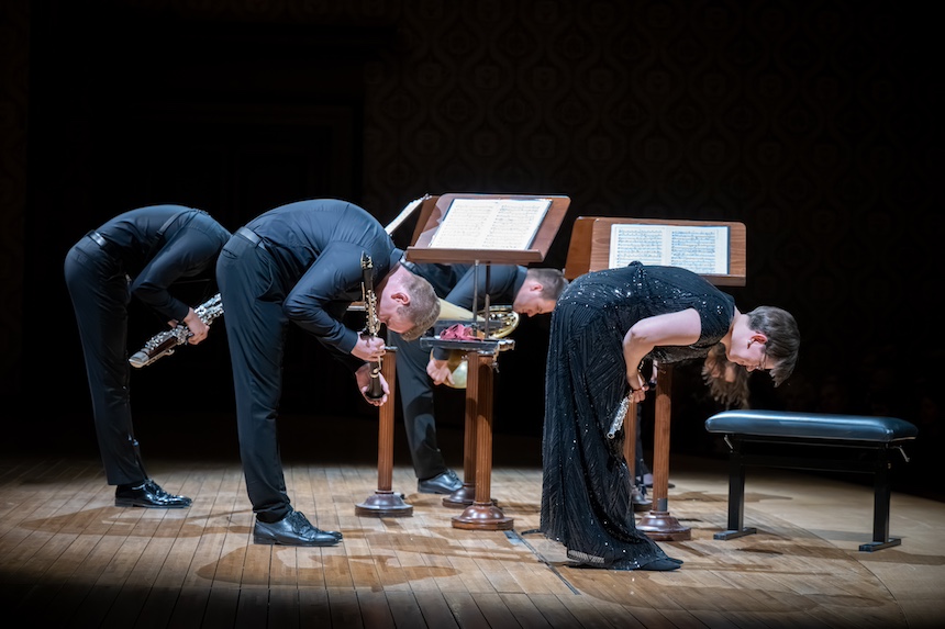 „Závěr je o to působivější, že flétnistka a hobojistka odložily nástroje a končily tichým zpěvem beze slov.“