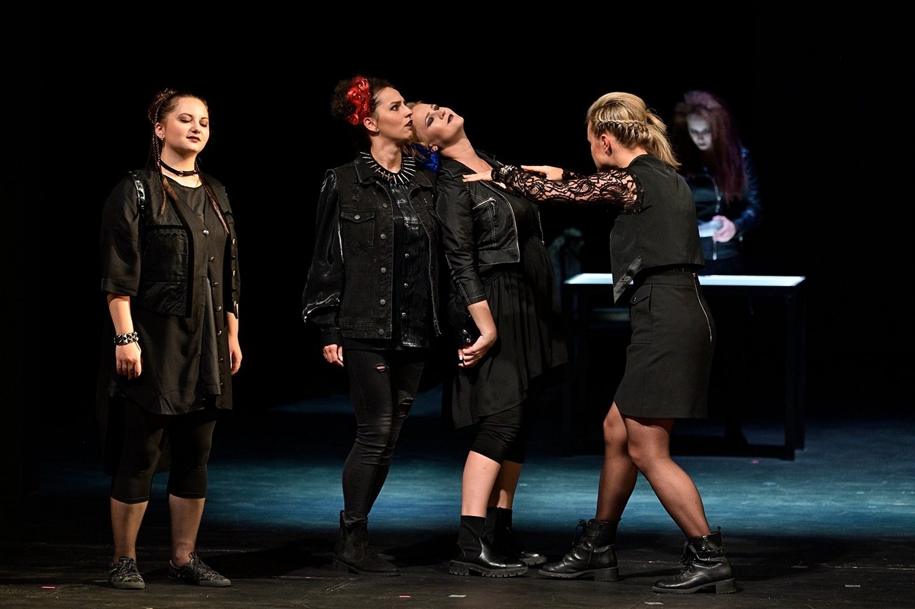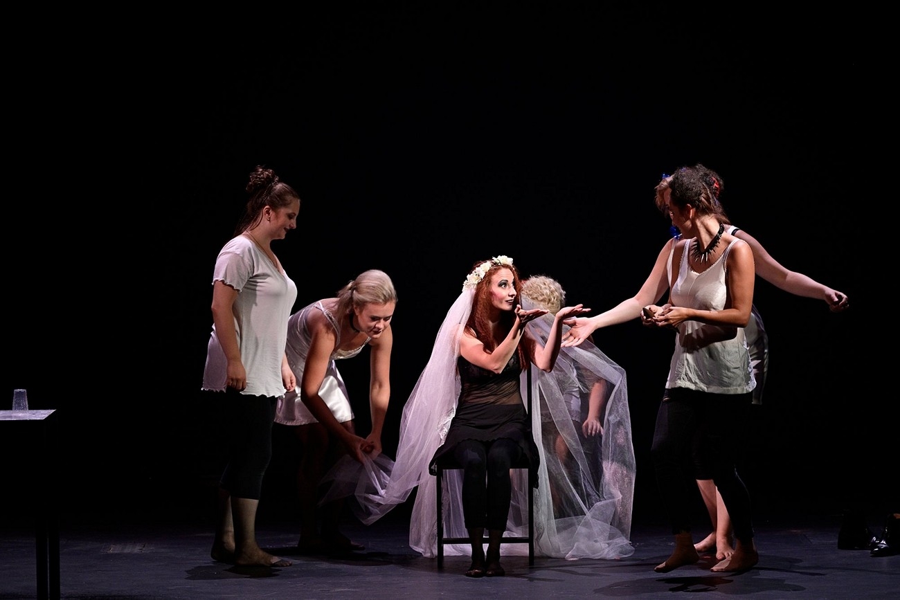 V réžii Jiřího Nekvasila, s kostýmami Marty Roszkopfovej a scénou Davida Baziku bola šestica dievčat, teda piatich družičiek a nevesty, vizuálne poňatá ako partia drsných rockeriek. Videla som inscenácie opery, kde boli dievčatá oblečené „civilnejšie“, a myslím si, že to dielu pristalo viac. To je ale asi len moja osobná preferencia. Takisto ako to, že hoci nápad posunúť niektoré úseky diela do roviny súčasnej rozlúčky so slobodou je veľmi zaujímavé, niektoré momenty („trkotanie“ dievčat v rýchlych sledoch slabík a hlások) boli na môj vkus možno už podané až príliš zjednodušene. Každopádne bolo však režijné podanie veľmi konzistentné a logické. Druhá, mystickejšia polovica opery, bola potom spracovaná skutočne okúzľujúco. Celkovo šlo o inscenáciu s minimom kulís a rekvizít, jedinou skutočne výraznou bol v podstate iba dlhý nevestin závoj.