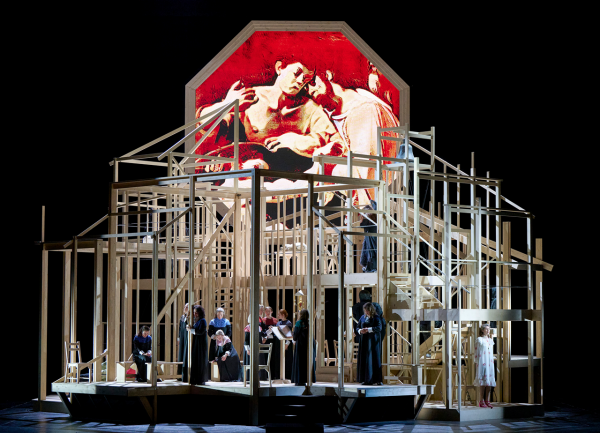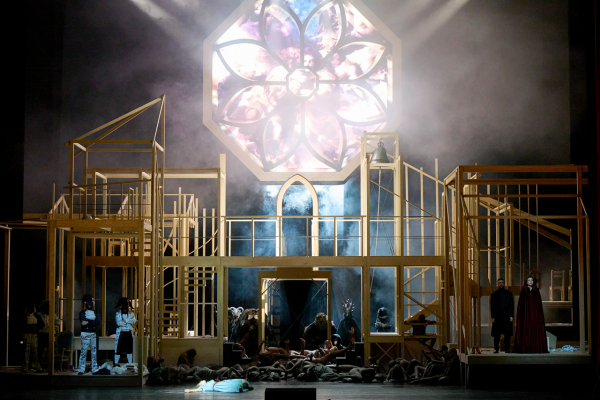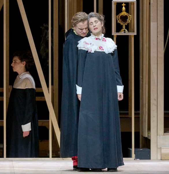 Celou operu provází němá postava, tanečnice v bílém trikotu, s mitrou na hlavě a mečem v ruce. Tancem ji ztvárňuje Sofia Stepura. Memento mori? Osud, který nelze změnit? V každém případě působí její postava v choreografii Christiana Herdena přízračně. (Světelný design obstarává Rudolf Fischer.)