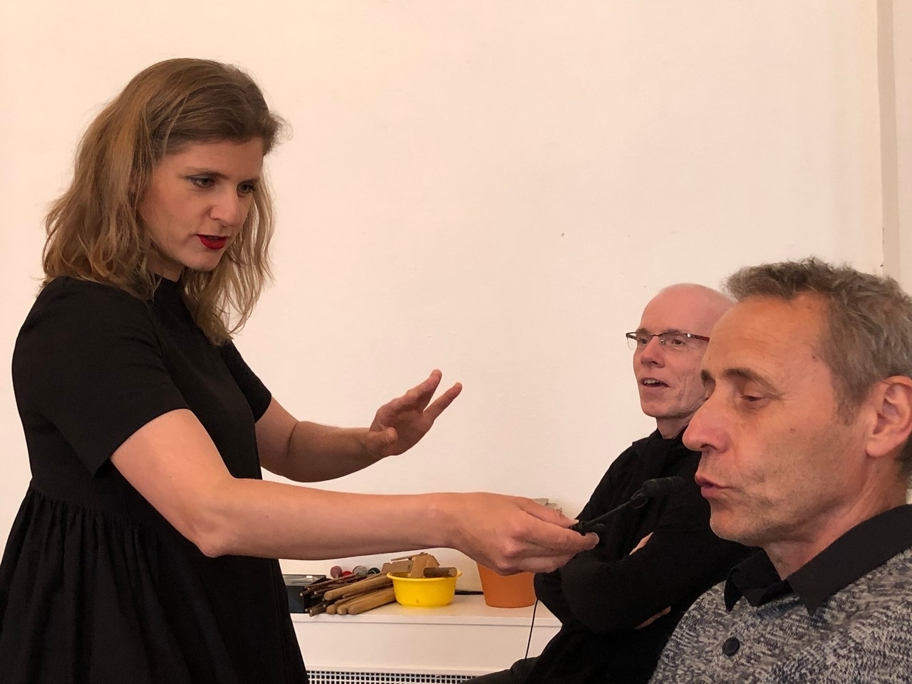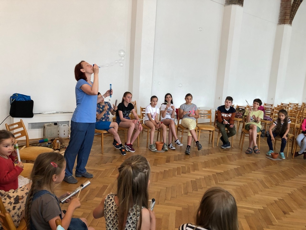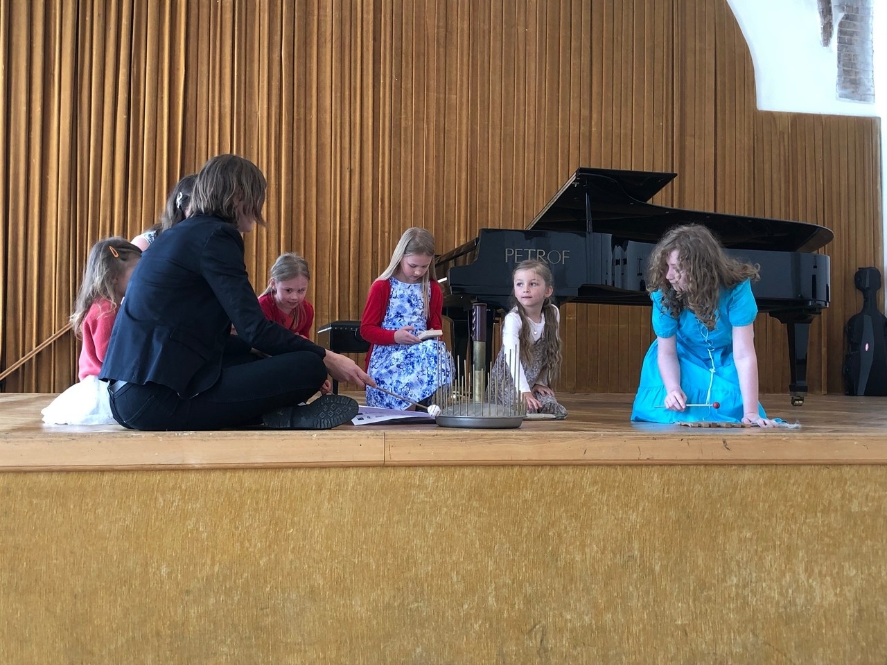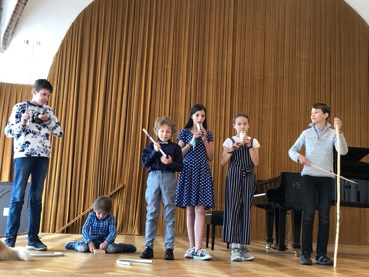 Na Dílně si děti nejen zahrály, ale také si mohly vyrobit vlastní nástroje z rozličných materiálů. S obrovskou vervou a úsilím tak vznikaly pod vedením laskavých a trpělivých lektorů Gabriely Všetičkové, Gabriely Coufalové a Jaromíra Synka všelijaké koncovky, vodní flétny, paličky, chřestidla, čaringy i kalimby… Další úžasnou věcí byla práce ve skupinkách, jejichž cílem bylo vytvořit kolektivně novou, částečně graficky fixovanou kompozici a posléze ji na koncertě předvést. Na tyto spontánní výrony fantazie se vždy těším nejvíc, protože se v nich naplno odhaluje přirozenost, svobodný charakter hudebního umění, ale i nezbytnost komunikace a nutkání být součástí týmu.