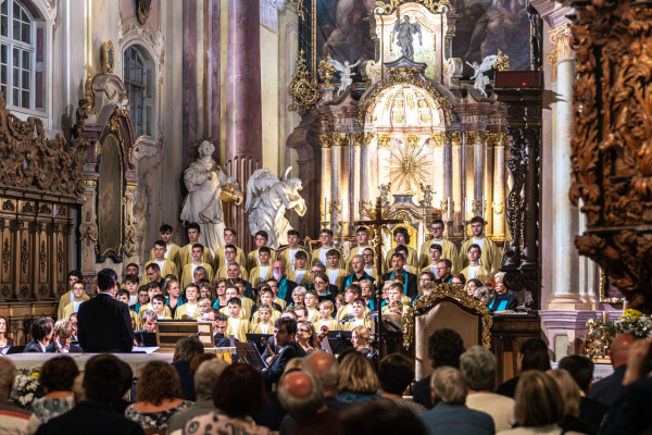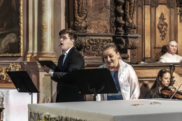 Během večera zaznělo celkem dvanáct hudebních čísel, kdy se střídaly nádherné sbory a koloraturní árie. Dramatický děj Hamánových intrik inicioval průzračně disciplinovaný zpěv sboristů Boni pueri. Následovala jemná árie v podání mladého tenoristy Jakuba Trnečky. Chlapecký sbor v dalším čísle doplnili hosté z Waidhofenu, kteří prokázali skvělou vyváženost hlasových skupin a secvičenost pod dlouholetým vedením paní Ilse Bernhard. Sopranistka Lucie Laubová stojí na prahu slibné pěvecké kariéry, svůj nádherný cit pro naléhavá pěvecká sdělení dokonale prokázala v následující náročné árii královny Ester. Obtížné koloraturní pasáže po vzoru efektních italských árií přednesla mladá sopranistka se sympatickou lehkostí a s bezvadnou jazykovou deklamací. Spontánní potlesk publika tak byl žádoucí. Orchestrálně sborový posun v ději byl hudebně pestrý a dobrý. Citlivě znělé cembalové intro připravilo prostor pro náruživou árii krále Assuera v podání Jakuba Trnečky. Mladý tenorista je studentem pražské HAMU, v loňském roce se stal úspěšným laureátem karlovarské pěvecké soutěže Antonína Dvořáka, udělena mu byla i zvláštní cena Gustava Mahlera. Nastudování Dittersova oratoria pro něj byla jistě zkušenost obohacující, na Trnečkově projevu byl znát smysl pro lyričnost, ale i hlasová pružnost ve střídání výrazových nuancí. Sbor Židů v následujícím čísle byl v podání hostů z Waidhofenu zazpíván s náležitou jemností, jakou si vyžadoval charakter děje a umění Dittersovy oratorní polyfonie. Předlouhý duet Ester a krále Assuera byl v podání obou sólistů bezesporu vrcholem celého koncertu. Lucie Laubová se s náročnými koloraturními ozdobami a záludnými hlasovými kličkami doslova mazlila a publikum napínavě sledovalo její úžasnou práci s dechem. Ani Jakub Trnečka nezůstával s jistou technikou hlasu pozadu a společně dokázali se vzdušnou lehkostí, ale i s náležitou technickou precizností přednést nádherný duet, za což si vysloužili nadšený potlesk. Tenorista svůj smysl pro kantabilitu předvedl i v následující neméně dlouhé a na dechovou techniku náročné árii Amana. Melodicky zajímavé a skvěle zahrané bylo flétnové sólo, na něž navázala sopranistka éterickou árií s jemnými přiznávkami zvukově kompaktního orchestru Wranitzky Kapelle. Závěrečné sborové tutti Boni Pueri a sboru Waidhofen bylo důkladně propracované a směřovalo ke grandióznímu jásavému finále, pro které byly proplétající se chlapecké hlasy jako stvořené.