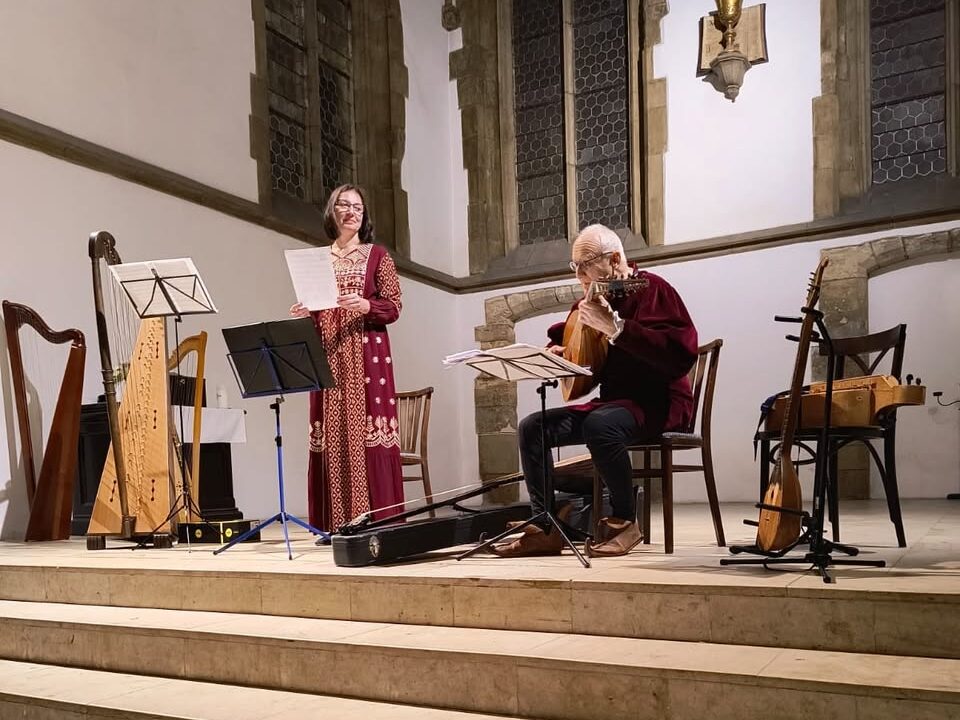 Harfistka vyměnila středověkou harfu za španělskou křížovou harfu arpa de dos ordenes a program pokračoval obdobím renesance. Instrumentální skladba A toy od Jane Pickering, autorky loutnové sbírky (1616), která je jedním z nejlepších zdrojů anglického loutnového repertoáru, zazněla na harfu a loutnu. Pěkná taneční hudba se hezky poslouchala a příjemně rozvlnila atmosféru. Smutný osud anglické královny Anny Boleynové (1507–1536) je všeobecně známý. Tragickou píseň O Death, která je jí připisovaná, údajně napsala ve vězeňské cele během posledních dnů před popravou. Interpreti ztvárnili píseň lkající nad temným osudem nebohé autorky s patřičnou vážností.