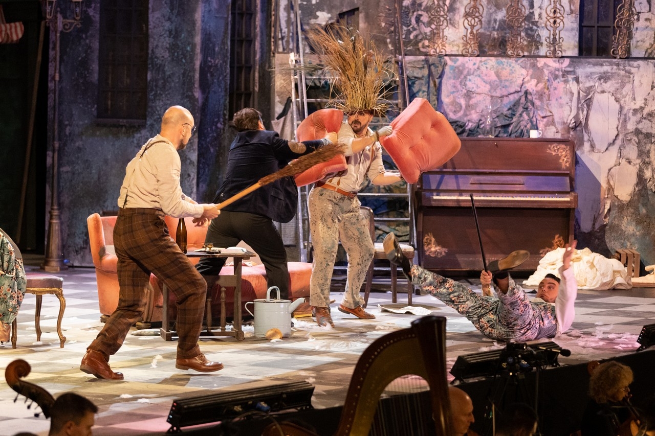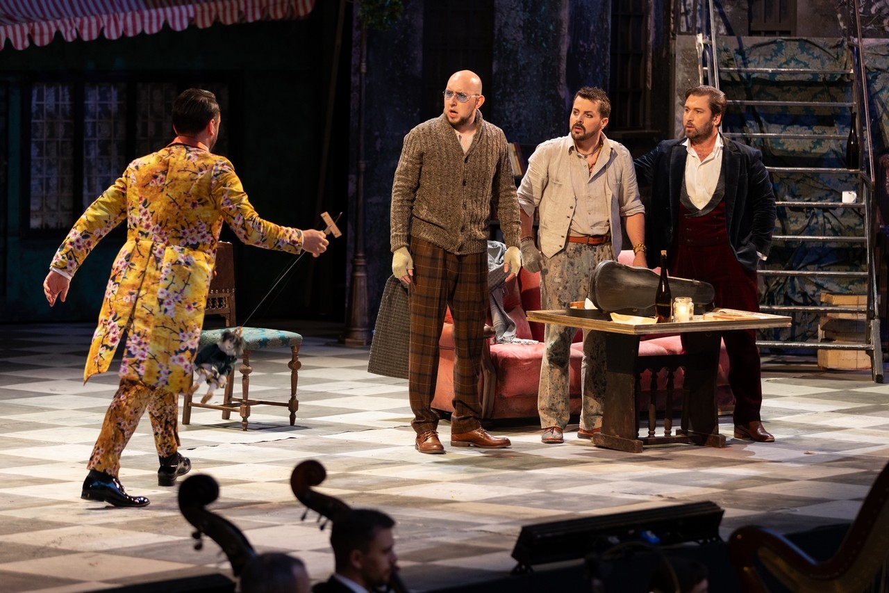 Na jevišti, sice ne tak hlubokém jako v Brně, zato dostatečně širokém, se odehrává tragický melodramatický příběh Rudolfa a nemocné Mimi, souběžně s naznačeným vztahem Musetty a Marcella, a to na pozadí městských obrázků. Druhé dějství je mistrovsky rozehrané do barvité scény, ve které se prolíná mimo jiné rošáda s večeří na účet Musettina „šamstra“, výjev dětí soustředěných kolem hračkářství a hra kolemjdoucí vojenské kapely… Puccini to vše zařídil hudebně geniálně a dirigent Jakub Klecker bezpečně vygradoval. O nedávné brněnské premiéře jsme podrobněji psali v rubrice ReflexePlus ZDE.