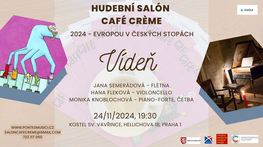 Po úvodním komorním provedení Bendovy Médey Hudební salón Café crème pokračoval pořadem připraveným k poctě skladatelské osobnosti Geraldine Mucha, jejíž život se uzavřel před dvanácti lety. Další projekt je nyní v plánu na vídeňské téma. Představena bude Vídeň jako jedno z nejdůležitějších evropských hudebních center, na jehož hudebním životě se v 18. stoletím zásadním způsobem podíleli čeští hudebníci. Téma bude dáno do kontextu stoupající obliby klavíru i repertoáru jemu svěřenému. Účinkují Jana Semerádová (klasicistní flétna), umělecká vedoucí souboru Collegium Marianum, dále Hana Fleková, známá violoncellistka a reprezentantka tzv. „staré hudby“ a nakonec také organizátorka, pořadatelka Monika Knoblochová hrající na fortepiano. Společnost jim udělají pánové skladatelé Leopold Koželuh, Vojtěch Jírovec, Jan Křtitel Vaňhal a Josef Fiala. Těšit se lze na klasicistní i raně romantická tria pro fortepiano. Hudbu drobně doplní zajímavé i zábavné úryvky z Jírovcova vlastního životopisu.