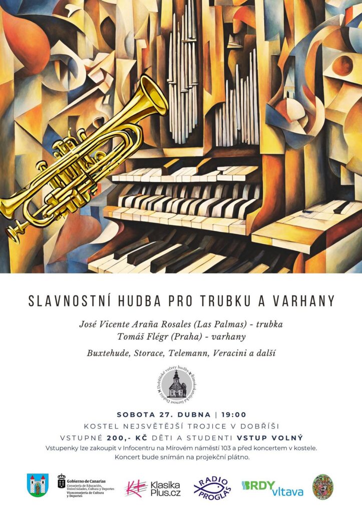 Římskokatolická farnost Dobříš zve v sobotu 27. dubna do kostela Nejsvětější Trojice v Dobříši na zahajovací koncert třetího ročníku Dobříšských večerů hudby. Od devatenácti hodin se představí trumpetista José Vicente Araña Rosales z Kanárských ostrovů spolu s pražským varhaníkem Tomášem Flégrem.