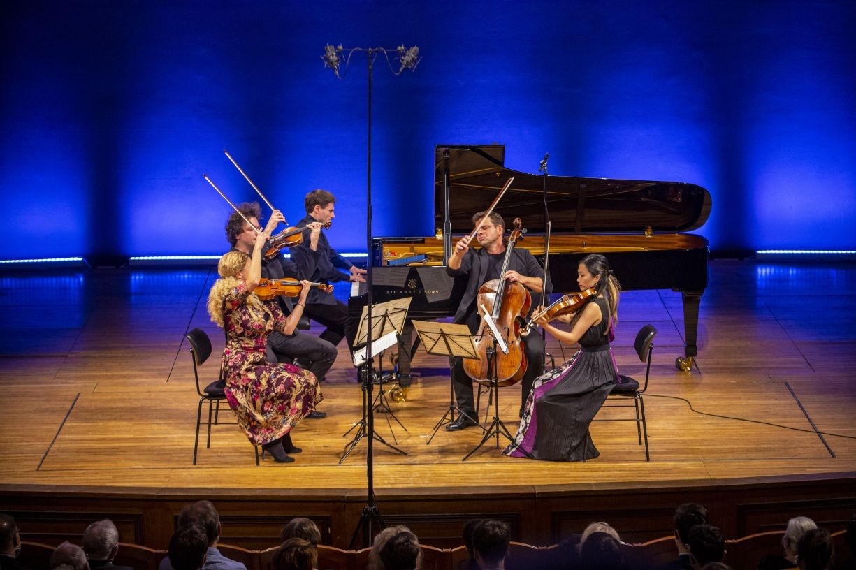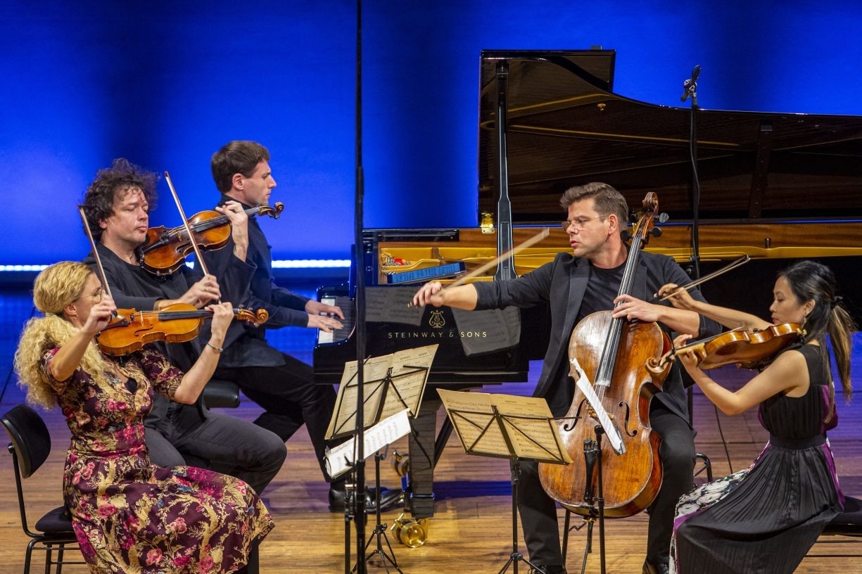 Ako prvý sme počuli Klavírny kvintet Dmitrija Šostakoviča. Dielo v piatich častiach patrí k tým kusom zo Šostakovičovej tvorby, ktoré majú tradičnejší charakter, jedinečná autorova hudobná reč však skladbou beztak presakuje. Celý kvintet je premenlivý, autor strieda výrazové roviny, hráči tak mali príležitosť ukázať sa v odľahčených, ale aj závažnejších či premýšľavých polohách. Výborne to využil Giltburg, ktorého sme počuli ako v delikátnych úsekoch, tak v miestach s hustejšou faktúrou, v ktorých predviedol napríklad mimoriadne znelé basy. Pavel Haas Quartet a Boris Giltburg spoľahlivo udržiavali zvukový balans, vynikajúco zneli ako celok. Takisto boli ale vydarené sólové vstupy: hneď zo začiatku zaujala nová violistka súboru Luosha Fang so svojou cituplne vystavanou líniou. Highlightom prevedenia bolo pre mňa druhé Adagio, komponované ako fúga. Hráči ju podali ako koncentrovanú výpoveď, v krehkých, intímnych úsekoch v piane vytvorili v sále až elektrizujúcu atmosféru. Na druhú stranu výborne zneli aj temperamentnejšie, veľmi sugestívne zahrané miesta, napríklad v treťom Scherze.