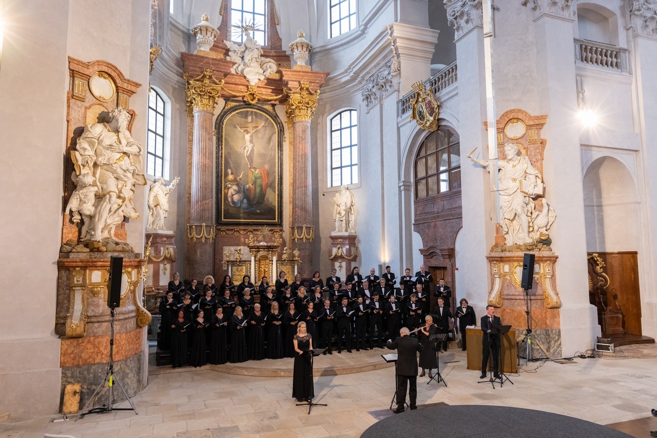 Program festivalu Smetanova Litomyšl ozdobil ve čtvrtek hodinovým koncertem duchovní hudby Český filharmonický sbor Brno. Na starou hudbu navázala Brucknerova moteta, Góreckého niterná kompozice určená polskému papeži a nakonec vlastní dílo sbormistra Petra Fialy, působivě a výstižně koncipované komorní oratorium Křest svaté Ludmily.