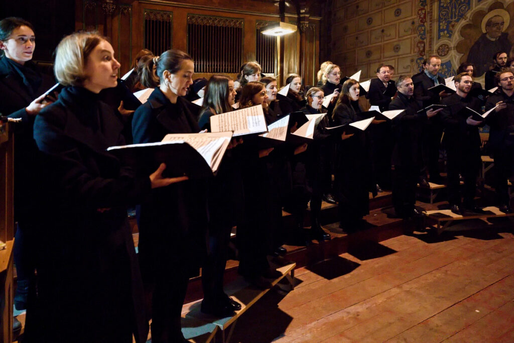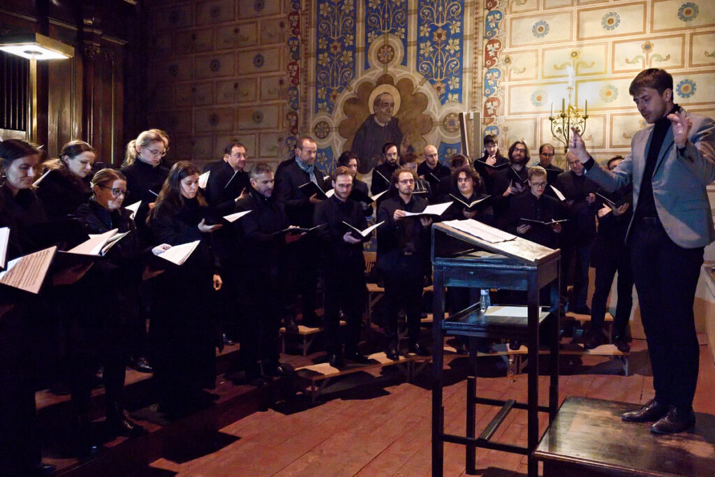 Na následující Čtyři moteta na motivy gregoriánského chorálu se již sboristi přesunuli dopředu a pokračovali na „durufleovské“ notě. Posluchači si však kromě Duruflého poslechli také varhanní improvizace, které sbor chytře využil k přesunu před publikum. Navázal motetem Ubi Caritas, který je založen na středověkém chorálu stejného jména. Hlasy zpěváků reagovaly na sbormistrovy jemné pohyby s obdivuhodnou přesností. Těleso dokáže respektovat autorský záměr a reflektovat i textovou stránku hymnu, nebojí se jemné, subtilní dynamiky, u Duruflého tolik podstatné.