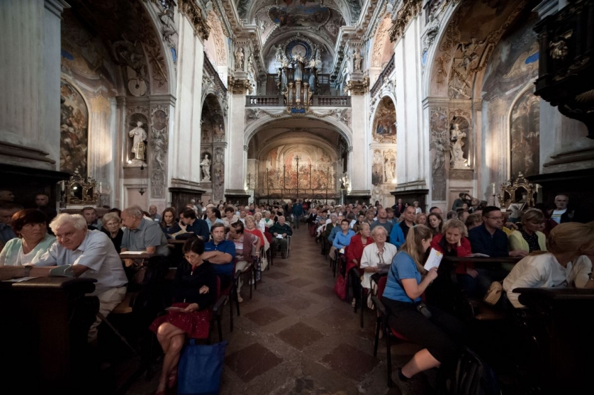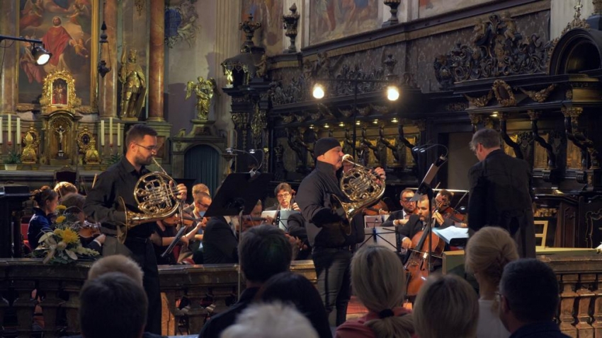Nejde – a nešlo ani v jednom případě tohoto programu – o duchovní hudbu, ale hodinový koncert byl i tak pěknou příležitostí nechat na sebe působit v souladu hudby a výtvarného umění bohatě zdobený interiér kostela. Za jeho barokní podobou stojí architekti Kryštof Dientzenhofer a jeho syn Kilián Ignác a vynikající štukatéři a malíři. K provedení čtyř skladeb přijel se svým příležitostně stálým orchestrem Zdeněk Klauda, hostem byl úspěšný operní pěvec Martin Šrejma a dvěma sólisty Zuzana Rzounková a Martin Sokol, kteří v nadcházejících dnech budou v Broumově mezi lektory Letních hornových kurzů.