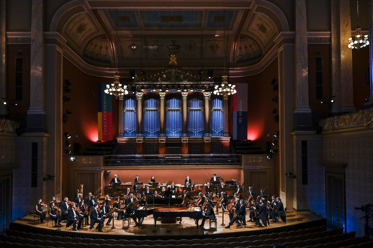 Česká filharmonie ve čtvrtek ze studia v Rudolfinu poprvé streamovala na sociální sítě a kanál you tube ve vlastní režii. Dirigoval Semjon Byčkov, sólistkami Koncertu pro dva klavíry současného amerického skladatele Bryce Dessnera byly sestry Katia a Marielle Labèqueovy. Výjimečná možnost sledovat koncert přímo v sále přinesla zjištění a utvrzení – intenzivní, naléhavé a až dojemné – že veškerá technická zprostředkování nemohou nahradit kontakt s hudbou znějící živě v prostoru. A také ujištění, že filharmonici, i když bez motivující a inspirativní přítomnosti publika, hrají na sto procent.