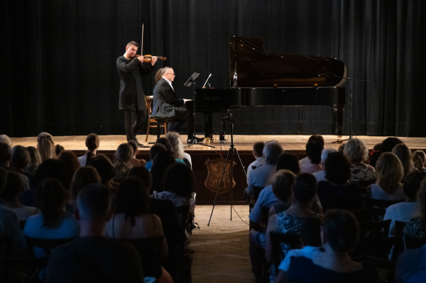 Jiří Vodička pochází z Ostravy a bývá řazen k nejvýraznějším českým houslistům současnosti. Jeho temperamentní i procítěná hra se opírá o suverénní technickou brilanci, které nechybí čitelný názor a smysl pro psychologickou kresbu. David Mareček je znám spoluprací s velkými osobnostmi klasické hudby. V minulosti se podílel na nahrávkách s violoncellistkou Alisou Weilerstein, basistou Janem Martiníkem či violoncellistkou Michaelou Fukačovou. Nový projekt Vodičky a Marečka, který dostane v blízké budoucnosti podobu na albu hudebního vydavatelství Supraphon, zacílil na dílo Antonína Dvořáka. Živé provedení si přišli poslechnout mladí klavíristé, rodiče i široká veřejnost, která zaplnila sál mikulovského zámku.
