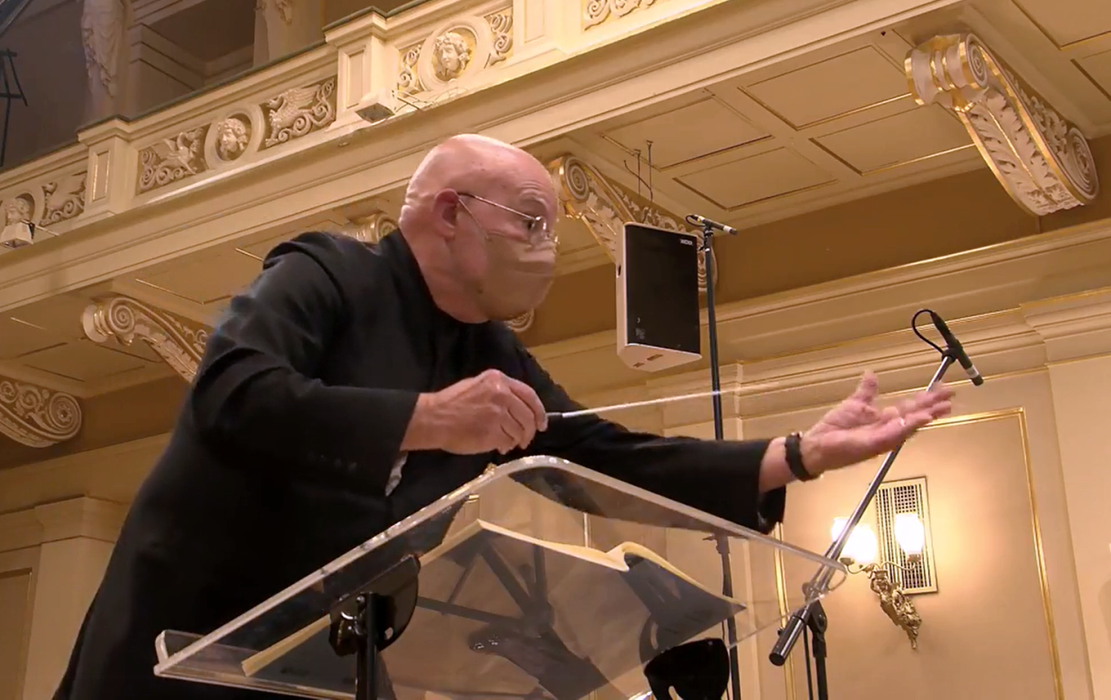 Přenos, zprostředkovaný Filharmonií Brno v online prostoru, měl nicméně svá překvapivá omezení. Představit si lepší a početnější technické vybavení a nápaditější obrazovou režii bylo docela snadné. Pochopitelně to souvisí s objemem volných financí, které lze do takového projektu investovat. Nabídka statických záběrů z několika málo střídajících se míst a úhlů nebyla příliš vynalézavá, často by se dalo polemizovat, jestli se, zejména v Brahmsovi, opravdu podařilo zachytit aktuálně nejdůležitější nástroj, občas uteklo oko kamery příliš brzy někam jinam… a hlavně, téměř vůbec, až na nepříliš pěkný příkrý detailní podhled, nebyl vůbec sledován dirigent – pokud se nepočítá celek sálu, na kterém byla jeho záda vždy rozpůlena stojanem mikrofonu… Pokud mají zůstat rozšiřující se online aktivity do budoucna jednou z relevantních cest komunikace uměleckých těles s publikem, bude nutné posílit jejich ekonomické zajištění.