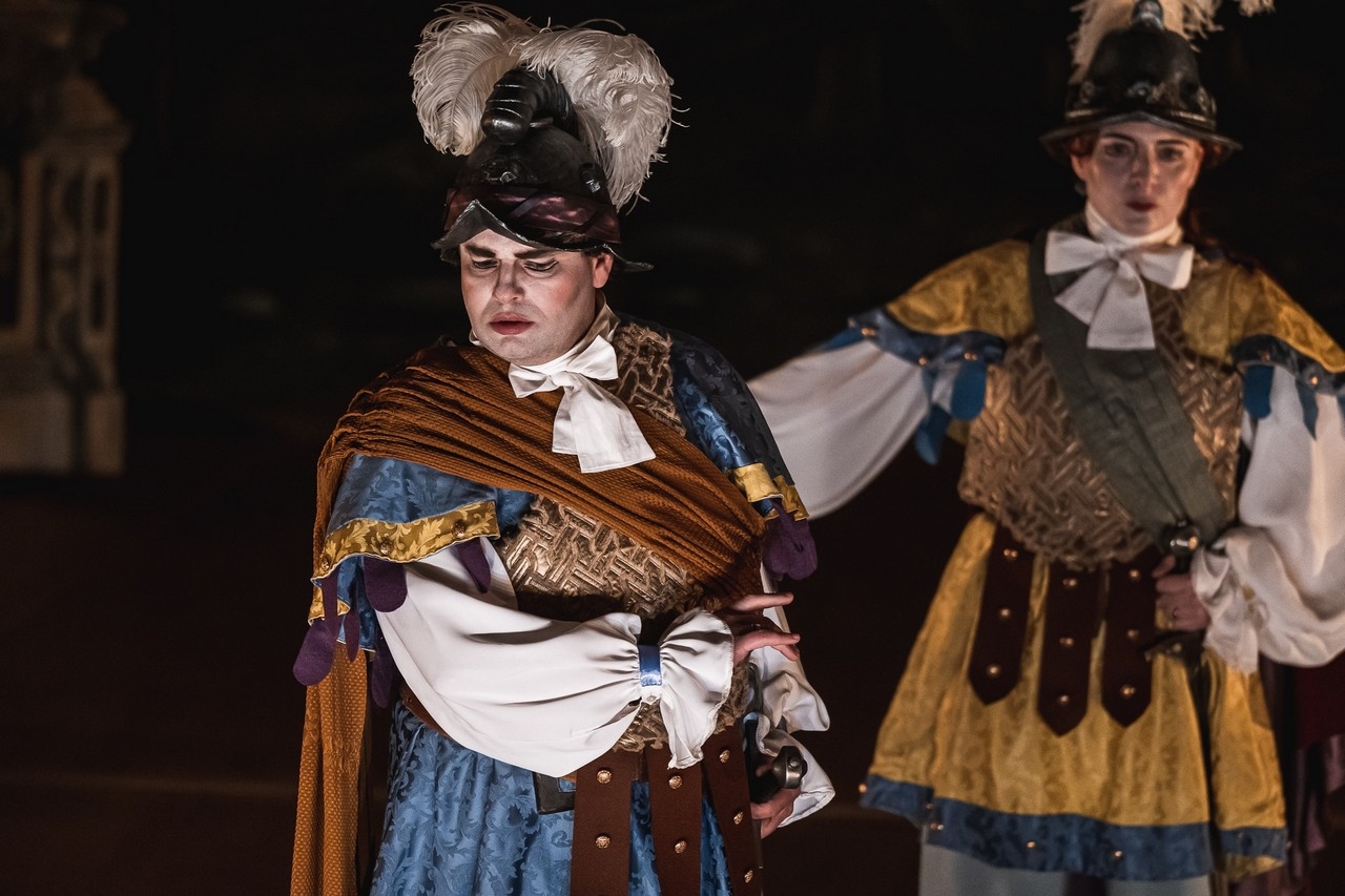 Režie se ujala zkušená tanečnice a choreografka Andrea Miltnerová, londýnská rodačka s českými kořeny, která má na kontě bezpočet cenných počinů. Účinkovala zrovna tak v Královské opeře ve Versailles jako v londýnském Barbicanu či ve Velkém divadle v Moskvě; svůj zájem o barokní estetiku vtělila do choreografické spolupráce s Davidem Radokem a Collegiem 1704 (provedení opery Arsilda v roce 2017) anebo se souborem Musica Florea Marka Štryncla (operní pasticcio Praga Nascente da Libussa e Primislao, 2020). A její zkušenost byla ve Valticích znát. Projev tří tanečnic zaujal propracovanou gestikou, pohyb pěvkyň a pěvců přirozeností a práce s prostorem, efekty a světlem střídmou působivostí.