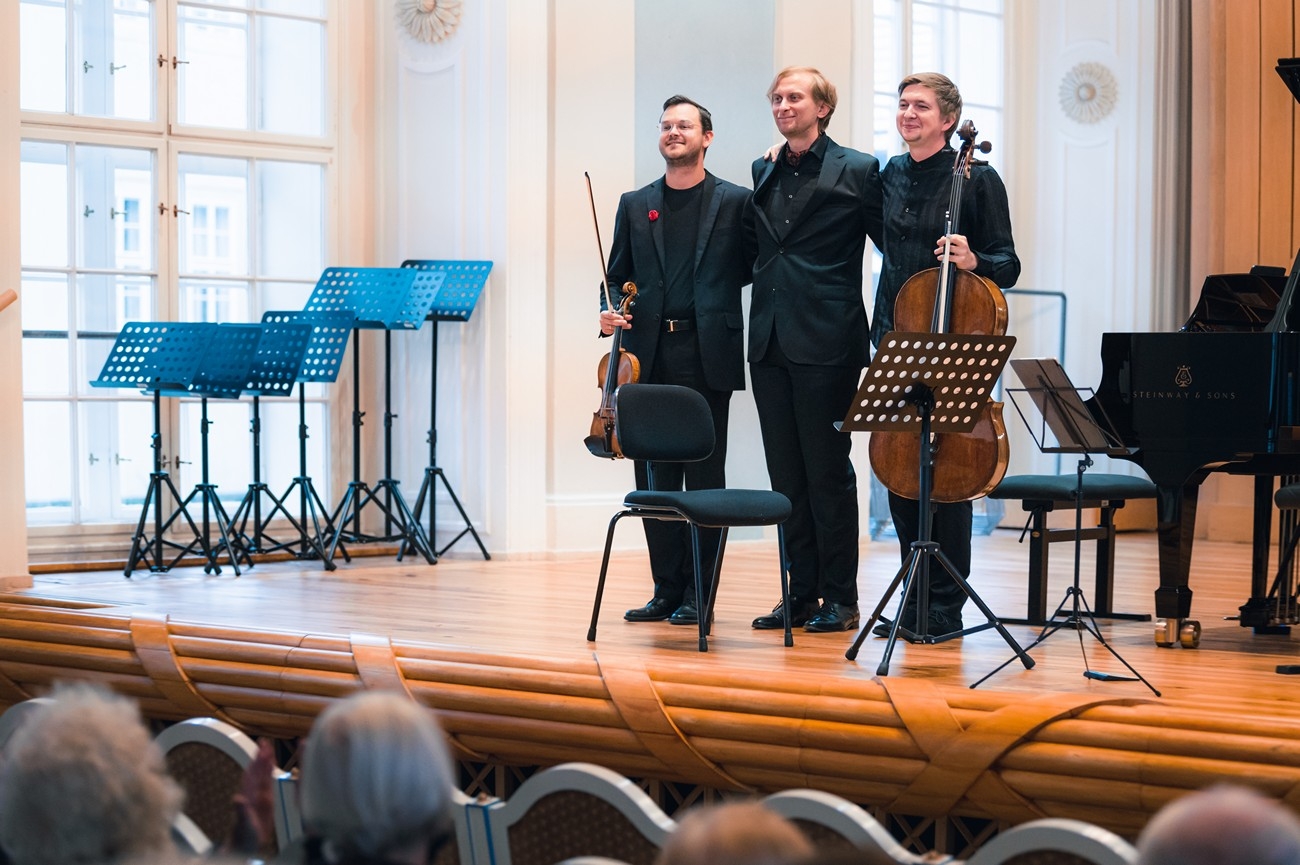 Český spolek pro komorní hudbu pozval k prvnímu koncertu svého dopoledního cyklu superstar českého komorního nebe – Dvořákovo trio. Pánové Jan Fišer, Tomáš Jamník a Ivo Kahánek okouzlují publikum každým svým vystoupením – naposledy jsme toho byli svědky na festivalu Dvořákova Praha, kde Ivo Kahánek čaroval s klavírním Dvořákem, violoncello Tomáše Jamníka bylo nepřeslechnutelné v komorních seskupeních a Jan Fišer jistě a elegantně vedl podvakrát Českou filharmonii na pozici koncertního mistra. Jejich výkony patřily k těm, na které se ani po dlouhé době nezapomíná. Když však hrají spolu, dostavuje se jiný posluchačský zážitek. Posluchač se dychtivě zaposlouchá do tématu rozvíjeného v houslích, ve violoncellu, v klavíru, nechá se unášet samozřejmou technickou bravurou i muzikálností, emocionalitou, prožitkem hráče… a náhle se nástroje propojí a posluchač je svědkem nové kvality, synergie povýšené do absolutního porozumění.