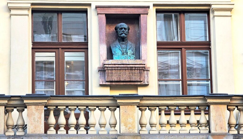 Ve stejném areálu – v někdejším refektáři kdysi jezuitského objektu – byl v 19. století zřízen významný pražský koncertní sál, kam skladatel chodil na koncerty a kde mu také hráli jeho díla, včetně některých premiér. Do Konviktu mířil ovšem pravidelně také do hostince, který provozovali rodiče jeho přítele, skladatele Karla Bendla. Přivedl tam i Brahmse. A když na sklonku života začal Dvořák učit na konzervatoři, bylo to v sousedství. Sídlila tehdy v budově za přilehlým kostelem sv. Bartoloměje; dnes je tam ženský klášter.