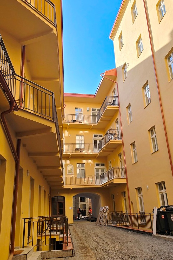 Dnes tak trochu tajemný činžovní dům u Karlova náměstí, odkud chodil denně na mši do kostela sv. Ignáce a kde mezi hosty Dvořákovy rodiny byl mimo jiné i Johannes Brahms a Petr Iljič Čajkovskij, koupil po roce 1990 jakýsi italský podnikatel, který prezentoval záměr zrekonstruovat ho na hotel a zachovat jednu místnost jako repliku Dvořákovy tamní pracovny. Majetkové vztahy se však postupně nějak zamotaly, přišly soudy… Dnes, v roce 2025, je objekt konečně alespoň po rekonstrukci.