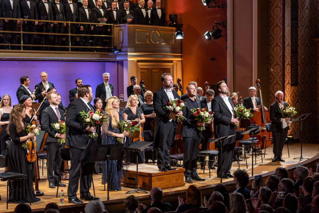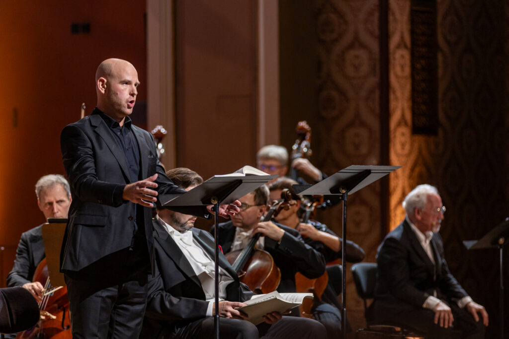 K provedení oratoria doplnili pódium Dvořákovy síně s orchestrem Prague Philharmonia také vynikající sólisté a varhanní empora patřila celému Pražskému filharmonickému sboru. Účinkovali i sólisté v čele s basbarytonistou australského původu Derekem Weltonem, který proslul zejména v barokním repertoáru a Wagnerových operních rolích a je uznáván pro svůj sytý a výrazově bohatý hlas, pro který je vyhledávaným pěvcem oratorních i operních sólových partů. Tentokrát uchvátil hrdinským pojetím Gilgameše, vládce moudrého i krutého s božskými vlastnostmi. Do děje vstupoval výtečně připravený sbor i další sólisté, včetně vypravěče, ztvárněného anglickým báječným hercem Simonem Callowem (mimo jiné známým z Formanova Amadea). Výtečná anglická sopranistka Lucy Crowe pojala svou roli jako andělský hlas a s nádhernou barvou jejího sopránu zněla sóla v něze i naléhání jako hlas z nebes. Americký tenorista Kyle van Schoonhoven zvítězil ve Velkém finále Metropolitní opery a je dnes označován jako vycházející wagnerovská hvězda. Vysoká postava a silný, lesklý tenor má jedinečné uplatnění v postavách výrazných operních hrdinů s pohyblivým vyrovnaným tónem svého hlasu. V části Smrt Enkiduova zněla jeho sóla Enkidua, který se postupně stává přítelem Gilgameše, ale smrti se neubrání, s oddaným výrazem a vnitřním naplněním. Český basista Jan Martiník začínal na českých scénách, dnes především Národního divadla v Praze, ale jeho hlavní scénou je již téměř deset let berlínská Státní opera Pod lipami. Rozsah operních rolí je obdivuhodný, od Janáčka a Pucciniho až k Mozartovi, často uvádí písňové cykly a jeho renomé stále stoupá. Krásný, tvárný bas Jana Martiníka je vždy naplněn emocemi a širokým rejstříkem výrazových poloh, s nimiž precizně ztvárňuje operní role i sólové party oratorií i písní. Všestrannost je pro tohoto pěvce charakteristická a naplňoval své sólové vstupy vřelostí a hlubokým uchopením zpívaného textu.
