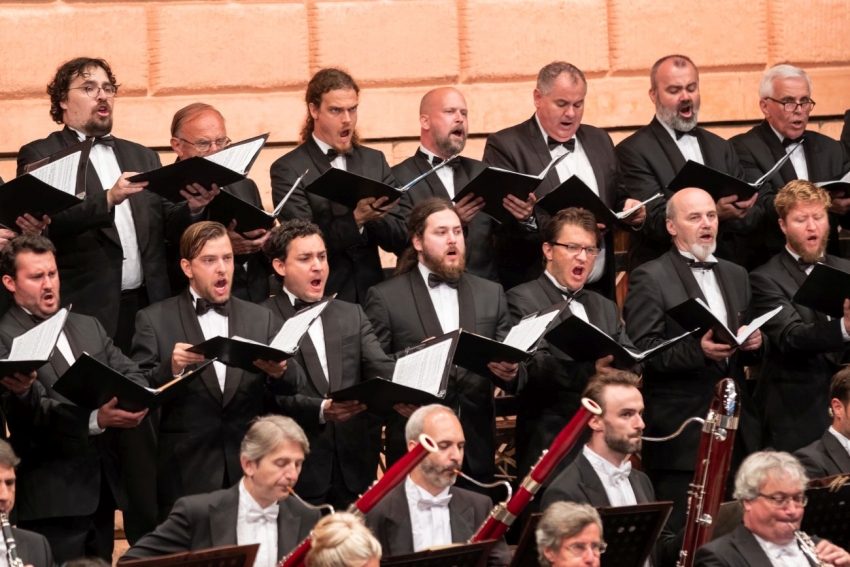 Český filharmonický sbor tvořil v obsazení 60 členů (číslo, které de facto jako ideální ustanovil legendární Ferdinand Vach a potvrdily ho mnohé akustické výzkumy). Zvuk tělesa byl velice homogenní, prostorově nosný a dynamicky pružný. Imponoval od vstupní mužské části měkkým, leč znělým pianem a pianissimem, předvedl imponující paletu zvukových barev v 6. části „Slyš naše písně horoucí a vroucí“, předvedl bezvadnou interpretaci polyfonních struktur v 8. části – “ Vždyť bozi s námi jsou“. V závěru 28. části udivoval přirozenou tónovou měkkostí a zároveň naléhavou intenzitou vystupňovaného plného fortissima a schopností velkolepé gradace. Základ všeho je právě v pěvecké měkkosti, což je pravý důvod zvukové nosnosti ve velikém prostoru. V účinkování za velkým orchestrem by možná nebylo od věci per futurum trochu posílit basovou skupinu, ale možná to byl jen můj subjektivní pocit v určitém místě auditoria.