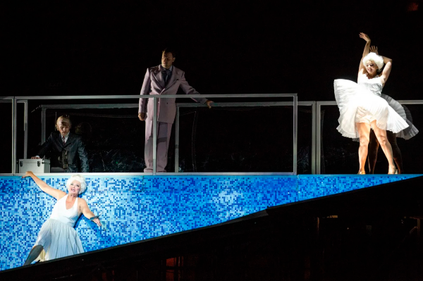 Marilyn Monroe se od předehry objevuje v černobílé filmové podobě během celé opery jako symbol světské slávy i tragického osudu, třeba i jako jakési další převtělení Eliny Makropulos, jako možná paralela či kontrapunkt k ústřednímu motivu díla. Jde o zobecnění, které je sice legitimní, mezinárodně sdělné, ale původní poetice dost vzdálené. Motiv je uplatněn i u mladé zpěvačky Kristy, mimochodem vynikající sopranistky Ilanah Lobel-Torres. Ve finále, kdy vrcholí tragédie ústřední postavy, se nevšímavě líčí a převléká do podoby tohoto symbolu přelomu padesátých a šedesátých let. A stejně jako Marylin si přidržuje neposlušně se vzdouvající sukni.