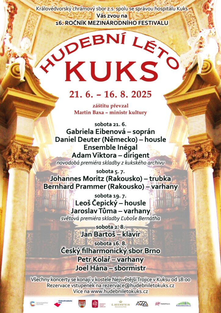 Hudební léto Kuks je mezinárodní festival klasické hudby konaný v kostele Nejsvětější Trojice v Kuksu. Na letošním 16. ročníku, který se uskuteční od 21. června do 16. srpna, vystoupí opět řada předních interpretů. Zahájení obstará Ensemble Inégal a spolu s ním dvojice sólistů.