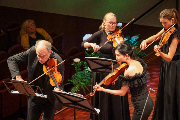 V druhé polovině večera zazněly seversky zamyšlená Synergie Erkkiho-Svena Tüüra, poněkud zdlouhavá Balada Yorka Bowena a Císařský valčík Johanna Strausse mladšího v půvabné zábavné interpretaci sedmičlenného komorního ansámblu. Očekávaným vrcholem byl Čajkovského Suvenýr z Florencie, kterého se ujali houslistky Triin Ruubel, Emma Yoon, violisté Xandi van der Dijk a Sarina Zickgraf a violoncellisté Benjamin Nyffenegger a Thomas Ruge (zástupce vedoucího violoncellové skupiny v Mnichovské filharmonii, vedoucí skupiny violoncell EFO, na téže pozici hrává v Mahler Chamber Orchestra, Symfonickém orchestru Bavorského rozhlasu, Izraelské filharmonii a dalších významných orchestrech, hraje v Lucernském festivalovém orchestru, byl členem Berlínských filharmoniků). Bylo to strhující podání v první větě vrcholící smyčcovou smrští, v druhé pak lahodnou souhrou, v níž vynikala cella a violy, nádherné bylo procítěné sólo Benjamina Nyffeneggera, jistě působila Triin Ruubel. Obě houslistky upoutaly svou virtuozitou i ve třetí větě, čtvrtá se nesla na vlně dynamického a tempového vzedmutí, které v tomto skvělém podání vyvolalo nadšený ohlas obecenstva.