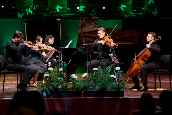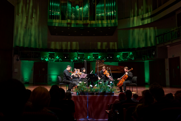 Zee Zee poté vystoupila i s kvartetem členů EFO, v němž první housle hrál Artur Podlesniy, sekund Sha Katsouris (oba jsou členy Symfonického orchestru Hessenského rozhlasu ve Frankfurtu a současně členy Hába Quartett), dále uznávaný estonský violista Andres Kaljuste (také houslista, pedagog a dirigent, orchestrální i komorní hráč) a violoncellista Benjamin Nyffenegger (Orchestr Tonhalle Curych a rovněž člen Julie Fischer Quartett, který budeme mít možnost slyšet letos v listopadu v Praze). Zahráli Klavírní kvintet fis moll, op. 67 Amy Beach. Skladbu z roku 1907 jsem slyšela poprvé a velmi mě zaujala jak romantickou melodickou invenčností, tak impresionistickými zvukovými plochami. V úvodní větě se proplétají dvě témata – přiznaně brahmsovské a lyričtější –, které se variují v partu klavíru i ve smyčcích. Drama, které v této části Adagio – Allegro moderato probíhá, ústí do zklidnění, kterému se dostane prostoru v druhé větě Adagio espressivo. Té dominovala zpěvná melodie, tlumeně ztvárněná smyčci, a snová a okouzlující hra Zee Zee, jež ukázala, jak citlivou partnerkou je. Finále Allegro agitato – Adagio come prima – Presto začíná neklidně a vzrušeně, klavír opět připomíná brahmsovské téma, které rozvíjejí smyčce. Klavíristka hraje velmi náročný part tak nepopsatelně dobře, až člověka napadají úvahy o pravdivosti, nepředstíravosti hudební interpretace. Tempo se postupně zpomaluje, další téma naznačuje viola a jemná tremola smyčců, v závěru se znovu rozpoutá triumfální smršť. Další obdiv a respekt vůči muzikantům, kteří vedle nároků symfonického orchestru věnují volný čas na festivalu komorní hudbě, v níž se neskryje sebemenší nesoustředěnost a nepřipravenost.