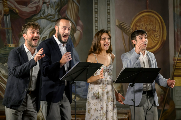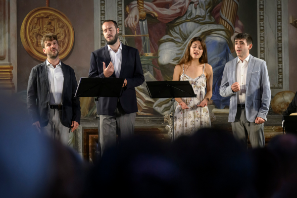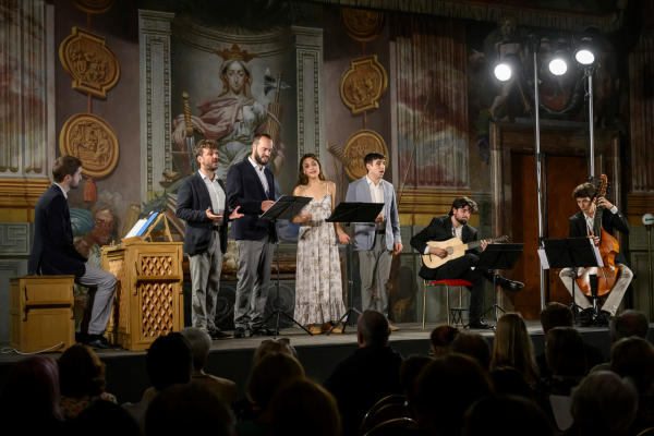 Kvarteto zpěváků ve složení Inés Alonso (soprán), Oriol Guimerà (kontratenor), Jorge Losana (tenor) a Víctor Cruz (bas) bylo hlasově vyrovnané, byť ucho a oko podvědomě sledovalo vůdčí vrchní hlas. Alonsové soprán na sebe však nestrhával příliš pozornosti na úkor ostatních, byl přirozený, hybný, intonačně bezchybný a nevtíravý a se spoluzpěváky se výborně pojil. Kontratenor Oriola Guimery byl příjemně světlý; je v podstatě velmi vysoký tenor, který nemusí využívat falzet, přitom ovšem není slyšet sebemenší náznak tlaku či námahy. Losanův tenor je naopak velmi jemný a kulatý, s výbornou barvou do ansámblu. Znělý bas Víctora Cruze byl solidním základem harmonie a lze se jen těšit na s přibývajícími léty vyzrálou barvu. Vokální složce vydatně sekundovali instrumentalisté – Pablo FitzGerald (vihuela da mano), Marc de la Linde (viola da gamba) a Joan Seguí (varhanní pozitiv), kteří s neokázalou lehkostí a brilancí předvedli nejenom své sólistické kvality, ale i schopnost dát svůj potenciál ve prospěch celku. Ansámbl výborně pracoval se zpěvními texty, a proto velmi dobře vystihl charakter jednotlivých skladeb. Nebyla to věc jednoduchá – ensaladas jsou mnohdy velmi rozsáhlé plochy hudby. Stěží si proto lze představit lepší živé provedení (snad s výjimkou detailů v podobě krátkých korun v závěru některých skladeb).