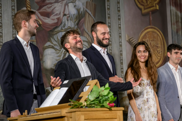Jak již bylo zmíněno v úvodu, Cantoría je soubor složený z mladých interpretů, co do věku šlo o suverénně nejmladší ansámbl letošního festivalu. Jejich mladistvému rozletu odpovídalo i celkové uchopení koncertního večera počínaje ošacením a konče komunikací s publikem. Starosvětský formalismus tak šel viditelně stranou – interpreti vystupovali v lehoučkých letních oblecích, odlehčená byla i jejich interpretace skladeb (ovšem nikoliv na úkor intonace či výrazu) a v našich končinách i jejich nebývale vřelý kontakt s publikem. To si hned na začátku koncertu naplno získal tenorista a zároveň vedoucí ansámblu Jorge Losana, neboť po úvodní skladbě Sus, sus, sus Bartomea Cárcerese (činný 1546) promluvil k auditoriu v češtině (stejně tak i na samém závěru). I po zbytek večera ovšem celý soubor s publikem vydatně komunikoval nejenom očním kontaktem, ale i dalšími nonverbálními prostředky. To bylo možné i díky tomu, že daný repertoár zpěváci znali zpola zpaměti a mohli tak k posluchačům skutečně hovořit pomocí hudby (naplno si ho užili pochopitelně zejména španělštiny znalí návštěvníci, ostatní byli nuceni občas sklonit zrak do zpěvních textů).