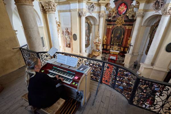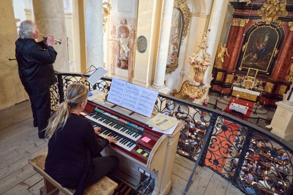 Spojení trubky a varhan je ověřené doslova staletími. Těžko bychom hledali jiný nástroj, který lépe konvenuje zvuku varhan. Přidává k nim další rejstřík, charakteristický svým jásavě slavnostním témbrem. Toto spojení si mohli vychutnat posluchači druhého festivalového koncertu v kostele Nejsvětější Trojice v Kuksu, jehož dvoumanuálové varhany s pedálem z roku 1906, vsazené do původní barokní skříně firmou Gebrüder Rieger, dokáží v působivé akustice poměrně malého, avšak impozantního barokního prostoru s netradiční architekturou a podmanivou výzdobou vytvořit až mystickou atmosféru. To se podařilo hned v úvodním Preludiu e moll, BWV 548 Johana Sebastiana Bacha (1685–1750) v podání Daniely Valtové Kosinové, absolventky pardubické konzervatoře, pražské AMU a stáže na Hochschule für Musik v Hamburku. Její koncertní činnost je velmi bohatá, vystupuje u nás i v zahraničí, včetně prestižních míst (Carnegie Hall v New Yorku, Musikverein ve Vídni a další), působí rovněž jako sólistka v Symfonickém orchestru hl. m. Prahy FOK.