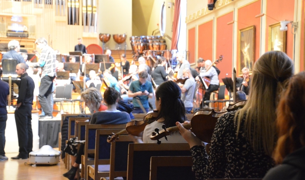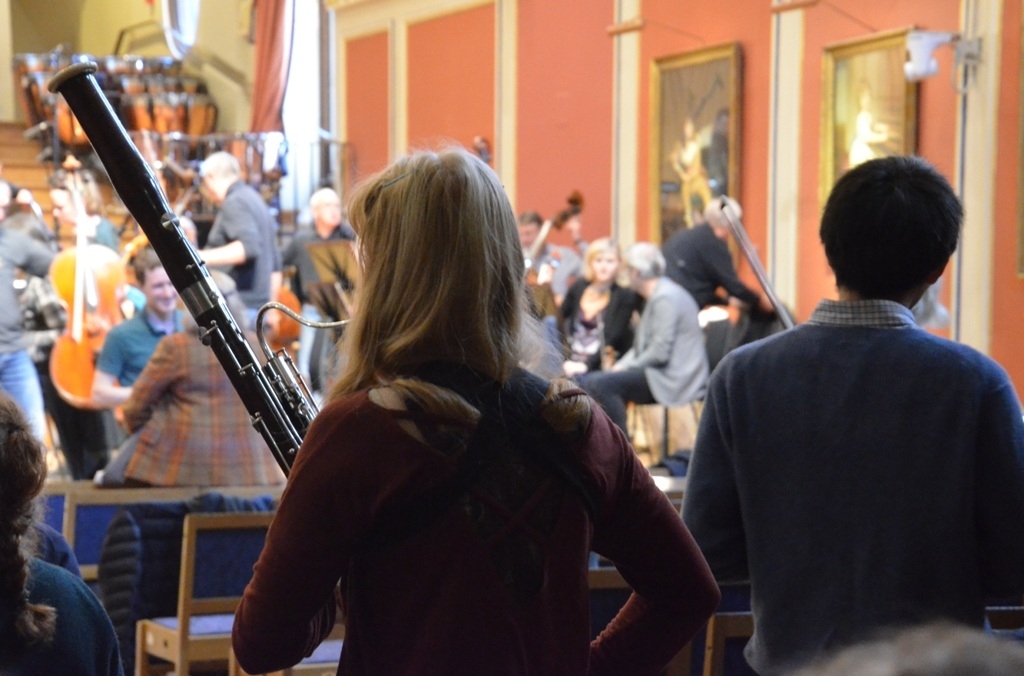 Studenti sedí ve školním koncertním sále, vyzdobeném podobiznami osobností minulosti, po celou zkoušku. Alisa Weilerstein hrála s Českou filharmonií Dvořákův Violoncellový koncert už mnohokrát, čeká ji dnes večer a pak ještě několikrát v příštích týdnech ve Spojených státech. Její vášnivé pojetí je emotivní, romantické, zajímavé. Osazenstvo v sále se zájmem sleduje jak sólistku, tak Semjona Byčkova. Že si kdekdo potichu brouká nebo ukazuje do rytmu, není překvapivé. Že tak činí i mladík, který zvnějšku otvírá a zavírá dveře do sálu, je už zajímavější.