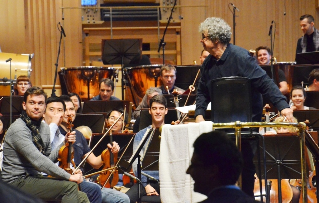 Zkouška na večerní koncert pokračuje, ve svižném tempu a velmi precizně dozněla předehra k Prodané nevěstě. Semjon Byčkov si otírá čelo velkým bílým ručníkem, sedá si na dirigentském pultu na židli, pohodlně se opírá a po chvíli mlčení směrem k filharmonikům a jejich momentálním mladým kolegům říká: „Fajn, prosím pojďme se teď trochu uvolnit. Ne tak úporně…“ Pak ještě zmiňuje několik detailů a upozorňuje na nutnost velmi přesně společně realizovat akcenty a sforzata. “Tak ještě jednou od začátku,“ zvedá ruce.