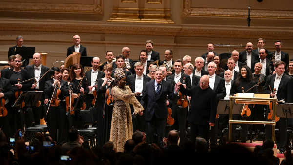 Carnegie Hall však není o akustice, je především o společenském setkávání s hudbou na té nejvyšší úrovni. A newyorská společnost s velkým napětím očekávala program druhé poloviny, tedy místní premiéru Symfonie č. 12 “Lodger” Philipa Glasse. Snad nejznámější současný americký skladatel se premiéry osobně zúčastnil a ještě před uvedením díla jej publikum přivítalo bouřlivým potleskem. Sólistkou večera byla Angélique Kidjo, která si po úvodních nejistotách získala publikum svou přirozeností. Diskutabilním mohlo být nazvučení jejího sólového zpěvu, který byl znatelně nadsazen nad celý symfonický orchestr včetně varhan. Ať už se jednalo o záměr, nebo ne, na výsledný efekt to vliv nemělo. Sedmivětá skladba psaná na texty Davida Bowieho a Briana Ena byla působivá, technicky precizně provedená, místy správně meditativně repetitivní, místy ohnivě energická. Oceňoval jsem profesionální přístup všech hráčů, kteří si dávali záležet i na tichém otáčení not. Přesvědčivý byl také výkon varhaníka Christiana Schmitta. Od první do poslední minuty bylo jasné, že si všichni společně užívají to, co ještě před pár měsíci mohlo být pouhým snem – vyprodané vystoupení před americkým publikem.