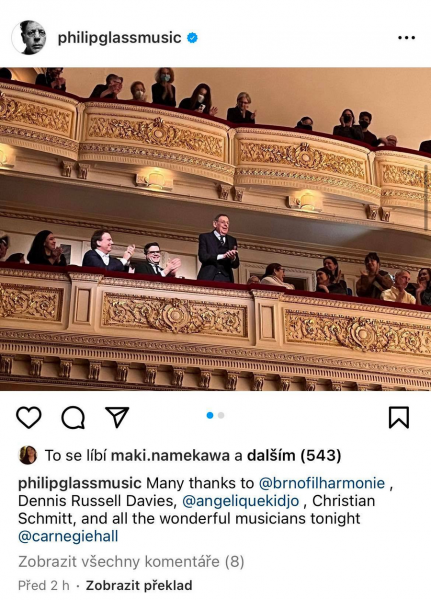 Philip Glass děkuje na sítích Filharmonii Brno