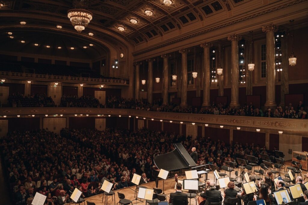 „Přijeli jsme k vám koncertovat proto, že váš koncertní sál je pro nás nejblíže,“ zahájil dirigent Davies úvodním slovem v němčině. Představil krátce Brno jako krásné univerzitní město s kvalitní kulturou, kterému jen ten koncertní sál ještě stále chybí.