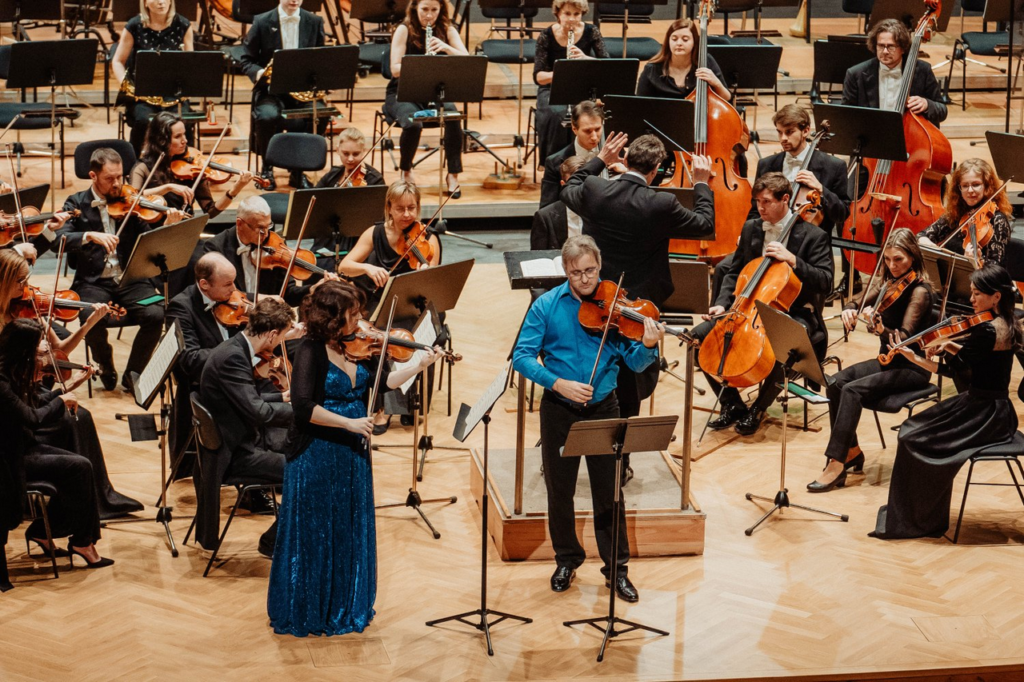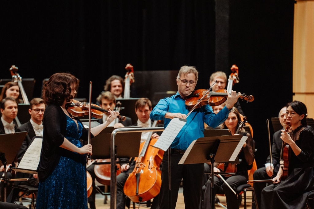 Bude ale asi od nás serióznější nespekulovat a rovnou uvést, že Koncertantní symfonie Es dur pro housle, violu a orchestr, K. 364 Wolfganga Amadea Mozarta se pro vstup do nového roku ukázala být šťastným řešením. Oba party pro sólové nástroje vyžadují přítomnost virtuosů a, jak se stalo u dirigenta Kaspara Zehndera typickým, vždy je ku prospěchu věci seznámit se s evropskými interprety mladšího a středního věku, které dirigent posluchačům při podobných příležitostech představuje. Tentokrát do Hradce přijeli houslistka Vladyslava Luchenko, jež již ve svých jedenácti letech debutovala jako sólistka Ukrajinské národní filharmonie, a violista Filip Michał Saffray, mající za sebou hudební vzdělání ve Francii, Polsku a Německu. Oba umělci spolupracují s řadou renomovaných orchestrů a myslím, že jim nečinilo potíže sblížit se i s tím královéhradeckým. Radost z muzicírování byla totiž z pódia patrná na všech. Vůbec přitom nezáleželo na tom, zda housle s violou hrají současně, nebo jeden nástroj po druhém, či se právě dostává největšího prostoru orchestru. Kaspar Zehnder navíc disponuje odzbrojujícím úsměvem, i ten mu pomáhá udržet vše v patřičných mezích.