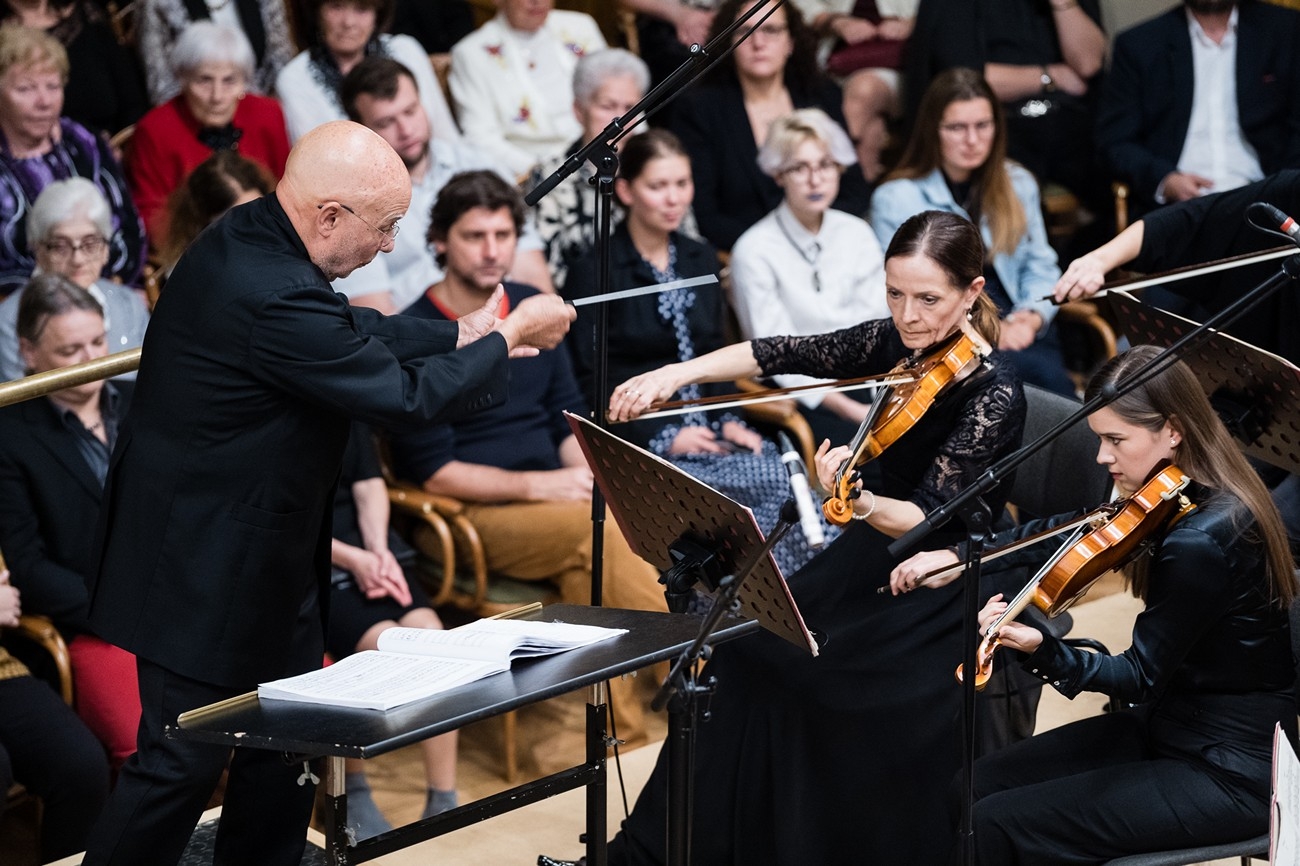 Výkon Filharmonie Brno naplnil všechny výše popsané perličky skladby. Když začneme od konce: ve finále orchestr dosáhl skutečně majestátního a plného zvuku, který zcela korespondoval s myšlenkou vygradování celé třičtvrtěhodinové kompozice. Byl to dokonce zvuk tak mohutný, že v prostoru relativně malého Besedního domu to bylo na některé možná až příliš (objevily se tam nějaké zacpané uši). Dle mého názoru byl však zvuk přiměřený slavnostnímu charakteru finále a orchestr se rozezněl v krásné barevné škále. Zvláštní uznání by si zasloužili v podstatě všichni hráči na dřevěné dechové nástroje, zmiňovaný lesní roh a violová sekce, která se v běhavé pasáži třetí věty opravdu blýskla. Vůbec největší poklonu by však měly obdržet hoboje, které svou – v Dvořákově pojetí vždy výjimečnou a výsadní – úlohu hrály naprosto famózně. Kaňkou na celkové vyznění skladby byla bohužel poměrně častá rytmická nesouhra. Zejména hlubší nástroje byly v mnoha případech trochu „líné“. V první větě by snad orchestru mohlo pomoci, kdyby dirigent, který v zájmu tahu fráze dirigoval tzv. „na jednu“, alespoň občas gesto nalomil ve prospěch třídobého schématu. Zejména pro synkopované pasáže by tak tempo získalo jasnější kontury. Z orchestru je nicméně také třeba vyzvednout řadu skutečně zapálených a energických výkonů, které u orchestrálních hráčů zas tak často nevídáme.