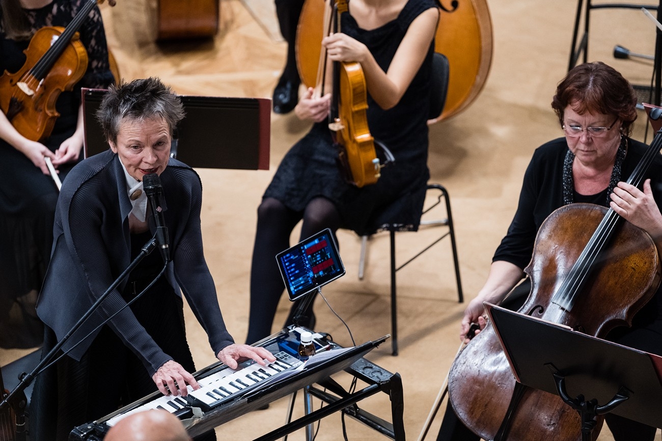 „Role vypravěče se ujala Laurie Anderson, která současně hrála na elektrifikované housle a obsluhovala další elektronické podkresy.“