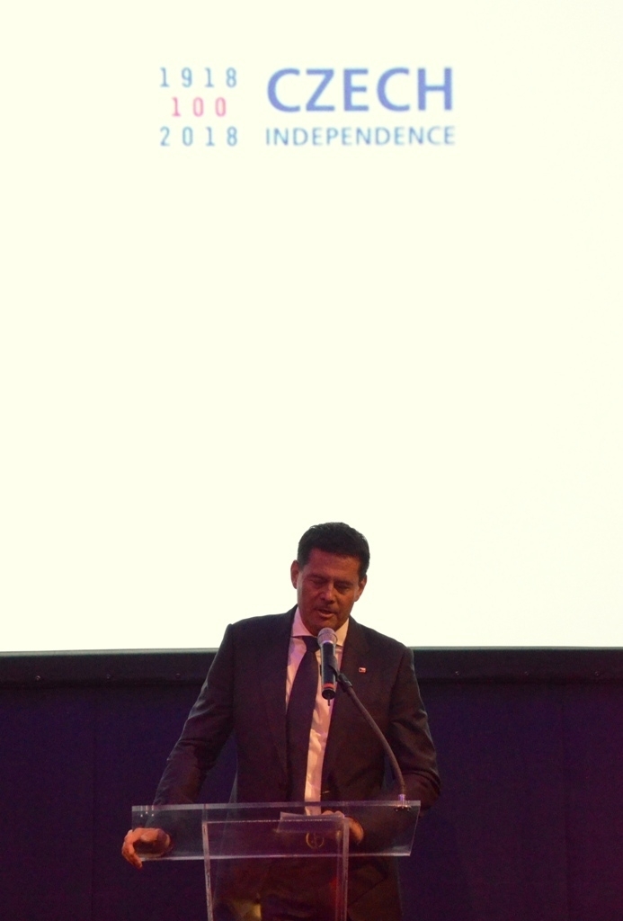 „Česká republika je prosperující hrdý středoevropský stát, pevně zakotvený v západní kultuře,“ prohlásil na setkání s novináři český velvyslanec v USA Hynek Kmoníček, když přibližoval dosavadní letošní průběh oslav stého výročí vzniku Československa a prezentaci země v Americe. Ve Spojených státech podle něj žije 1,7 milionů lidí s českými kořeny. Nejvíc jich podle jeho slov není ani v New Yorku, ani v Chicagu nebo ve Washingtonu, ale v Texasu a Nebrasce. „Slavili jsme důstojně, a to i tam, kde už třicet nebo čtyřicet let žádnou návštěvu jménem naší země neměli,“ poznamenal.