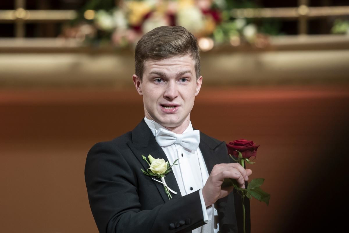 Petr Nekoranec připravil osm árií. Nejprve to byli Mozart, Donizetti, Rossini a Verdi, potom dvě málokdy slýchaná čísla – melodická árie z opery Královna ze Sáby od Karla Goldmarka z roku 1875 a chytlavý popěvek o třech slokách z opery Postilión z Lonjumeau od Adolpha-Charlese Adama z roku 1836. Možná poprvé jsme tuto vycházející hvězdu, úspěšnou v cizině i v tuzemsku v opeře, slyšeli v Rudolfinu s orchestrem. Hlas mu v poslední době evidentně zesílil, přesto je zatím nadále tím zpěvákem, který okouzluje lahodností, lehkostí a pohyblivostí hodně vysoko posazeného hlasu, ale ne fondem – patří k těm, které na balkoně Dvořákovy síně nemůže být slyšet tak dobře jako v přízemí. Výběr árií byl vhodný a poutavý, kontakt s publikem okamžitý a trvalý. V ukázkách z opery Don Pasquale zpíval Nekoranec s kytarami a tamburínou a pak se sólovými houslemi, později potěšil Nápojem lásky a Lazebníkem sevillským i méně známou kavatinou z Verdiho Lombarďanů.