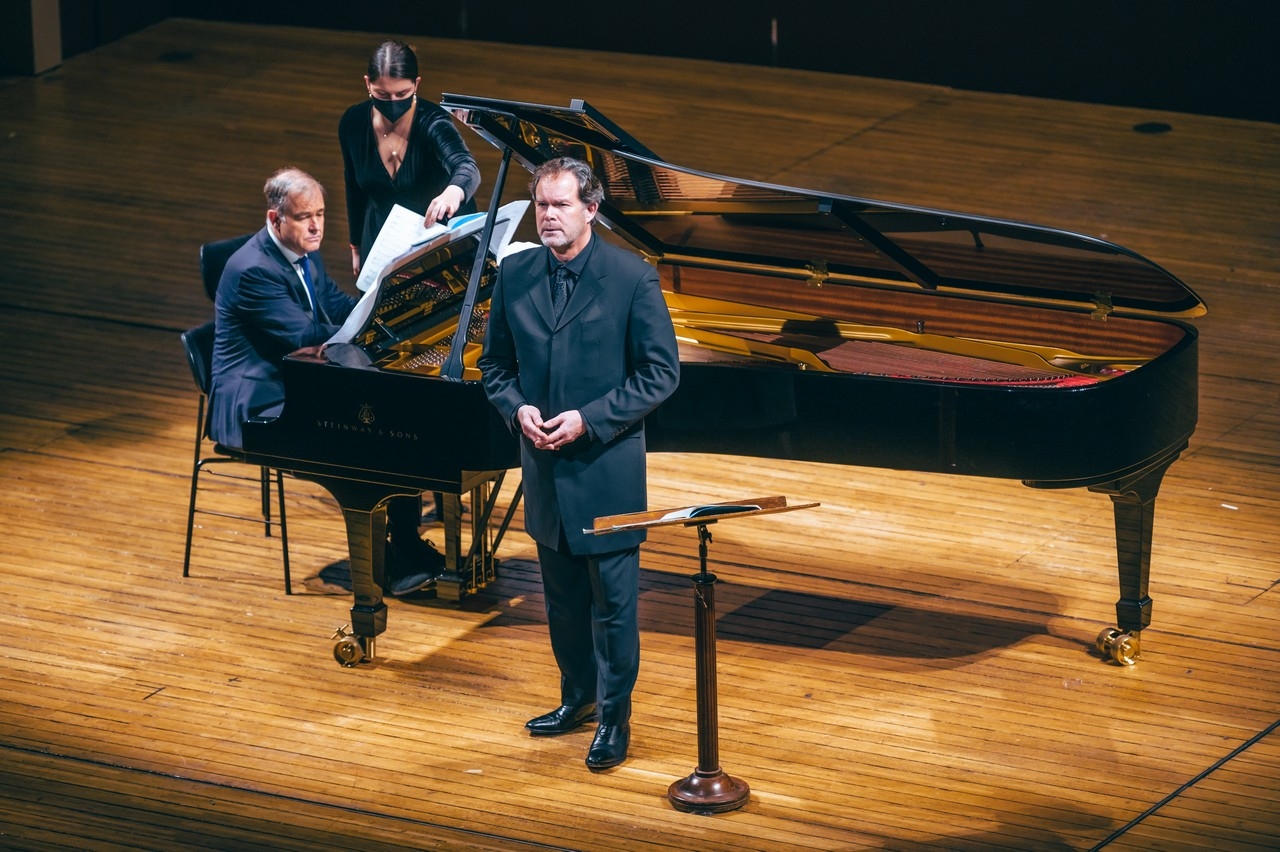 Co očekáváme od pěvce světového formátu, kterým bezesporu uznávaný držitel Grammy basbarytonista Gerald Finley je? Každý posluchač asi něco trochu jiného. Ti, kteří přišli na nedělní koncert v očekávání všeobecně známých a dojemných romantických písní, mohli být zklamáni. Podobně se mohli cítit i posluchači, kteří očekávali pěvce, který se emocionálně takříkajíc „utrhne ze řetězu“ a svou teatralitou bude uchvacovat publikum od začátku do konce. Na své si však určitě přišli milovníci kultivovaného a dobře kontrolovaného zpěvu, syté a nosné barvy pěveckého hlasu ve všech polohách i dynamikách, chytré a promyšlené dramaturgie a v neposlední řadě skvělé souhry pěvce a klavíristy Juliuse Drakea. A emoce? Rozhodně nechyběly, i když byly – dle mého soudu záměrně – dávkovány tak, aby jich nikde nebylo více, než je potřeba, a vždy odpovídaly obsahu a vývoji písně. Tato výstavba pak rozhodně přispěla k celkovému dojmu z nevšedního písňového recitálu. Některé písně byly interpretovány spíše „aristokraticky“, noblesně, někdo by třeba řekl i chladně. O to silněji však působily ty, kde se oba umělci pohroužili do nitra a až introvertně posluchače vtáhli do hloubi svých citů nebo naopak ty, kde se Finleyho hlas plně rozezněl a on místy až exaltovaně fyzicky vykročil směrem k publiku. To vše za vynikající podpory klavíristy Juliuse Drakea, který s pěvcem vyloženě dýchal.