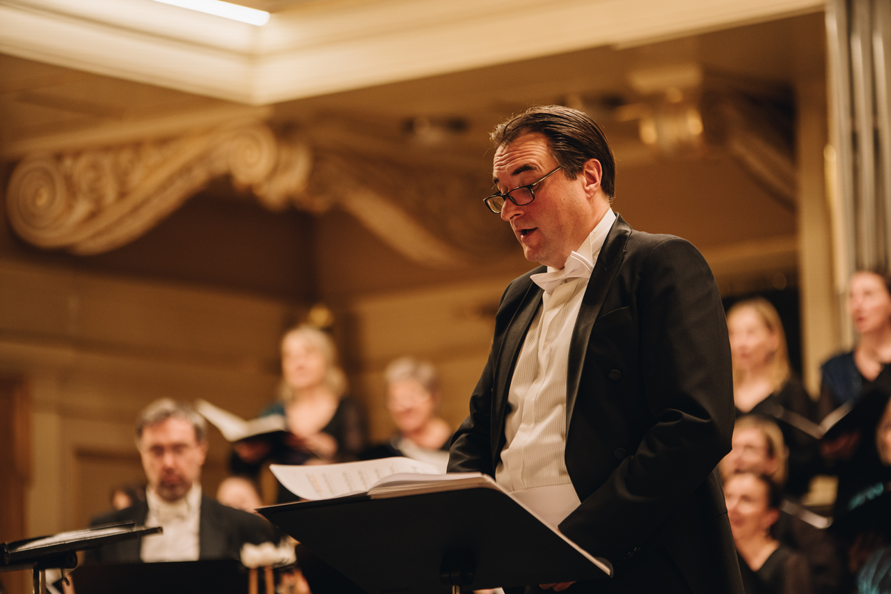 Po přestávce už na pódium nastoupil sbor a komorní instrumentální ansámbl. Taktovky se ujal Stanislav Vavřínek, šéfdirigent Komorní filharmonie Pardubice a bývalý šéfdirigent Jihočeské komorní filharmonie a Filharmonie Bohuslava Martinů.