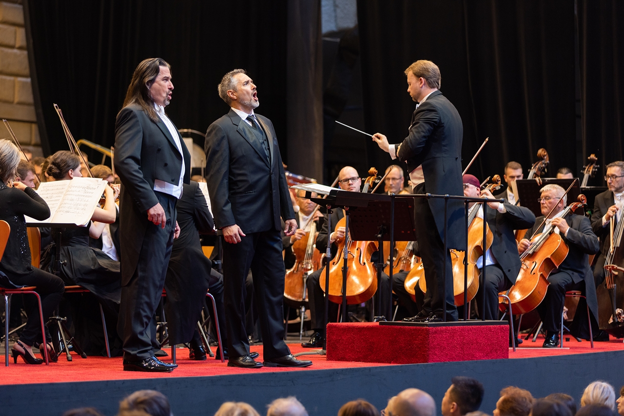Na koncertním večeru se pod taktovkou Roberta Kružíka podíleli tři ohlášení pěvci – Andrea Danková, Harold Meers a Dalibor Jenis. S nimi na záskok Pavla Vykopalová. A Richard Novák v závěru druhého dějství Síly osudu jako františkán, otec Guardian. Ještě stále se znělým hlasovým fondem, s osudově znějícím slovem „maledizione“ na rtech, úctyhodně nyní na pódiu vzpomínající na impozantní jevištní ztvárnění postavy představeného kláštera, který v příběhu Leonoru přijímá pod ochranu a posílá do poustevnické jeskyně. Na Smetanově Litomyšli se od roku 1964 objevil už bezmála padesátkrát…